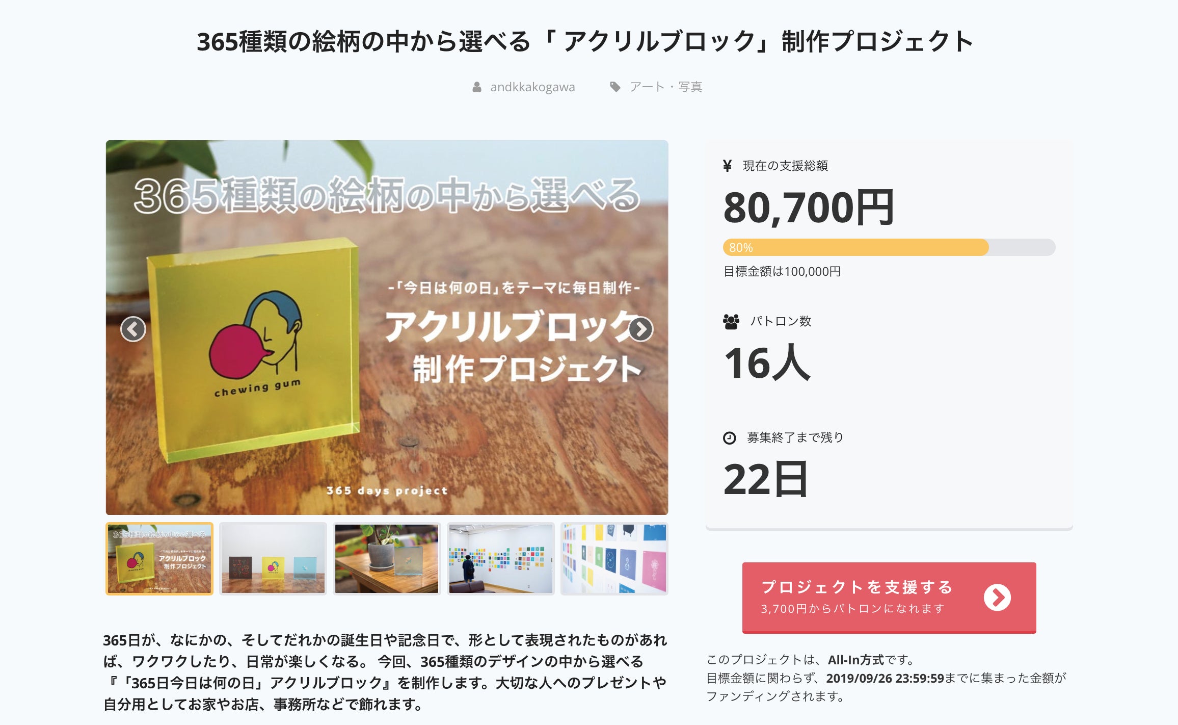 応援、ご支援ありがとうございます!無事目標達成し、プロジェクトが終了致しました。引き続き、アクリルブロックの制作に進んでおります。お届けまで、もう少々お待ちください!引き続きよろしくお願いいたします。