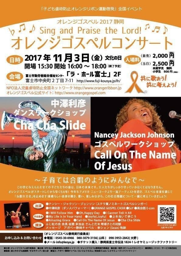 児童虐待防止というテーマを、これが私が担うべき働きだ!周囲の人にも、もっと身近に感じてほしいという想いで、2年前にオレンジゴスペルというイベントを開催させていただきました。その時も中澤さんには無償で来ていただき、大変恐縮した事がまだ記憶に新しいです。