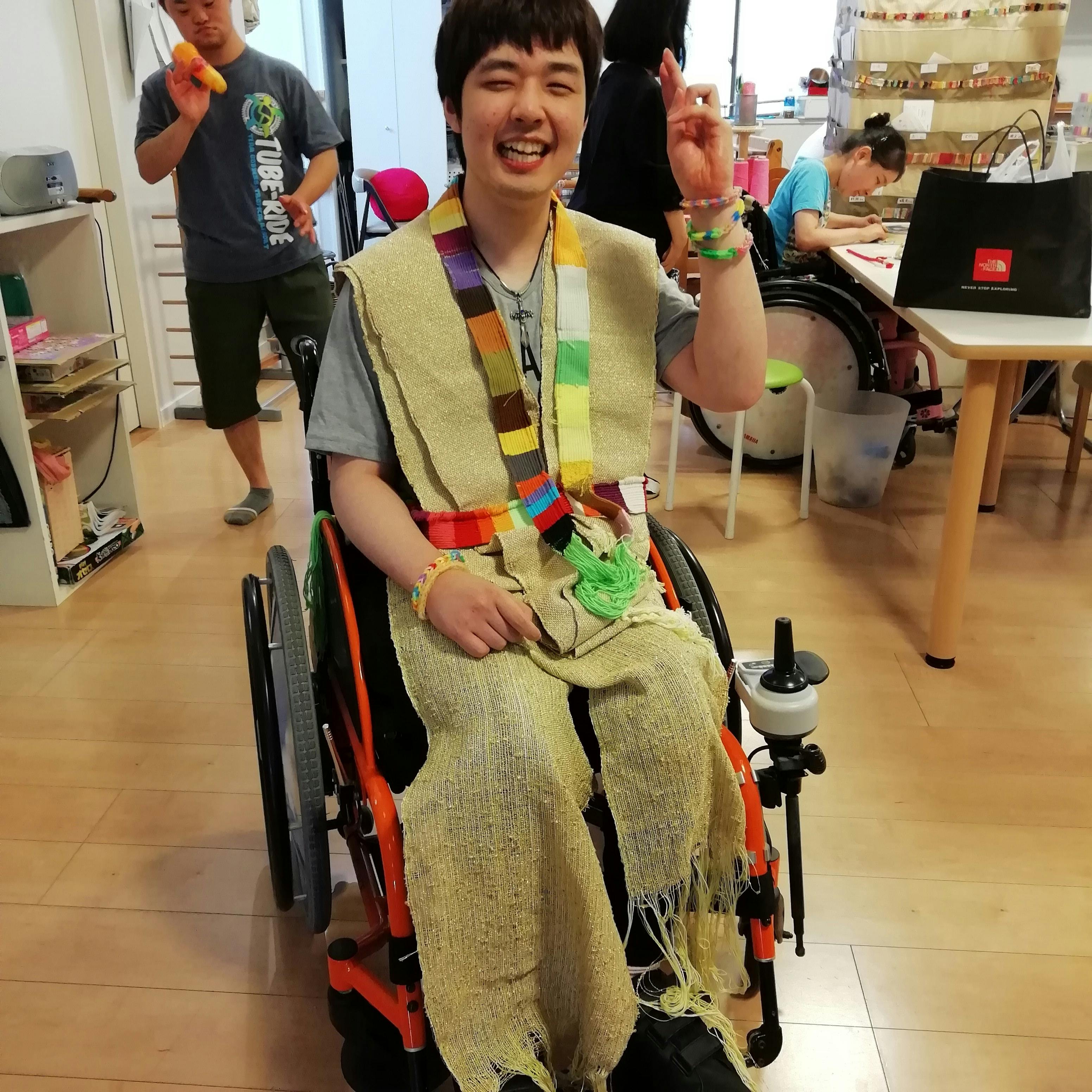 自分の織った布がどんな風に衣装になっていくのか、最初はイメージできなかったかもしれません。実際、身体に布を合わせ、その姿を鏡を見ながら進めていくことで表情にも変化があらわれています。