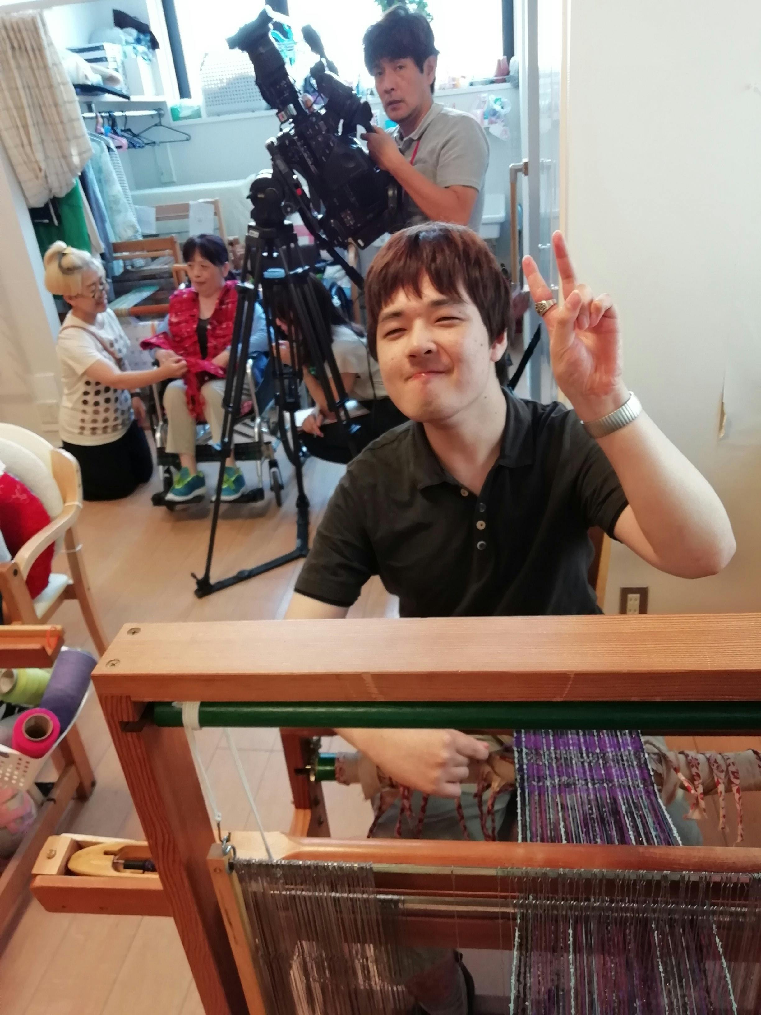 テレビ局の方から、織のこと衣装のことなど質問にも答えていただいている様子です。