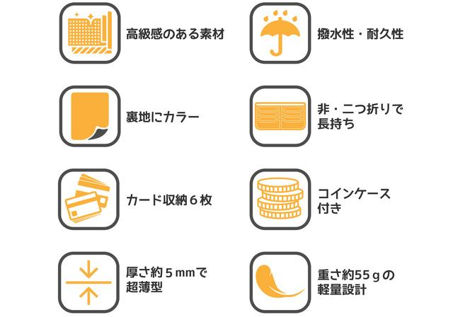 ⑥厚さ約5mmで超薄型で、スーツのポケットに入れても嵩張らない