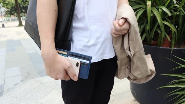 大容量で便利ですが、その厚みのせいでスーツのジャケットには入らず、パンツのポケットに入れたとしても見栄え・ビジネスマナーともに良しとはされていません。