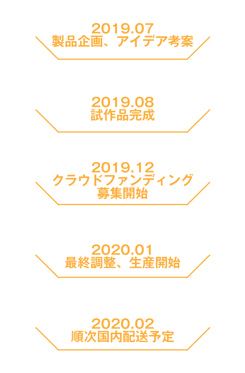 本製品は量産に一切の問題はなく、プロジェクト成立移行はできる限り早くお手元に届けられるよう努力いたしますが、想定を上回る大量のご注文時や素材供給に時間が必要な場合など予期しないトラブル、また物流事情などで遅延が発生する場合がある点についてはご留意ください。