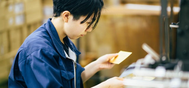 また、和紙への箔押しは、いつもお世話になっている「コスモテック」さんにお願いします。箔押しで困ったことがあった時は、ここに相談すれば間違いのない匠の技をもつ箔押し加工工房です。プロトタイプも、コスモテック現場リーダーの前田さんの確かな技術で美しく仕上げていただいています。