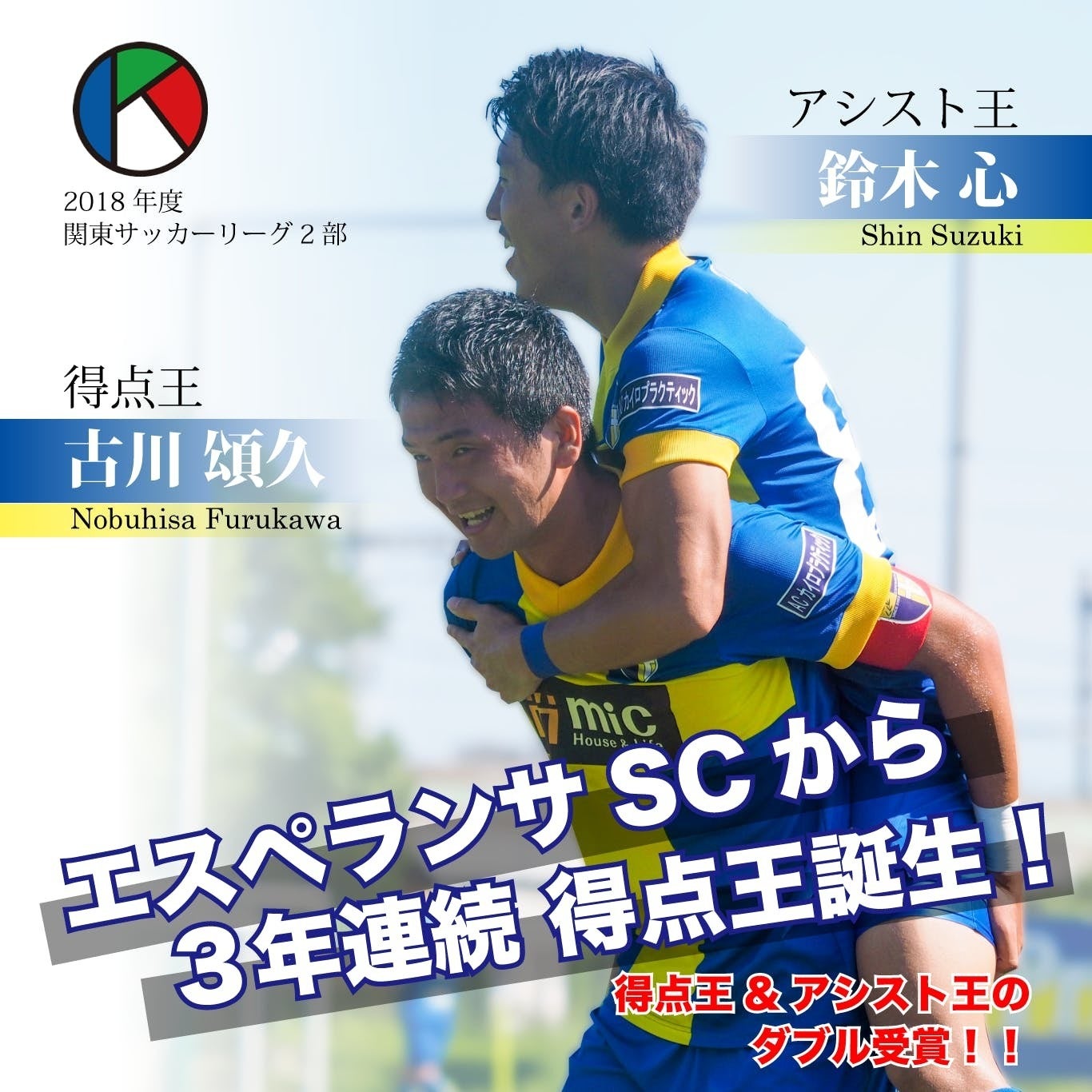 そして今年度、関東リーグでは一部昇格を目指し昇格争い中。古川頌久選手は、2年連続3回目の得点王に向けゴールを量産中。また昨年アシスト王になった鈴木心選手も6得点と調子をあげています!(2019年8月末時点)