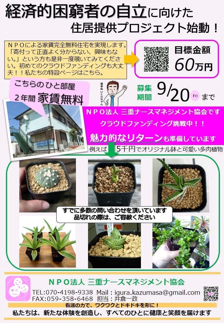 NPO発 家賃完全無料の住宅!!三重県津市で生活に困窮している人に安心のすまいを!