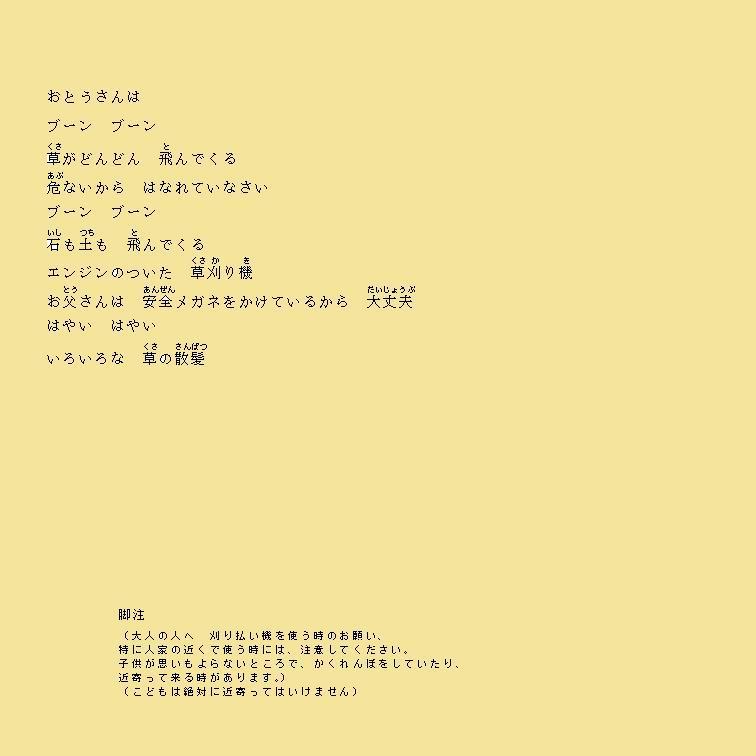 おとうさんが刈った 草の上 いろんな草が 生えている