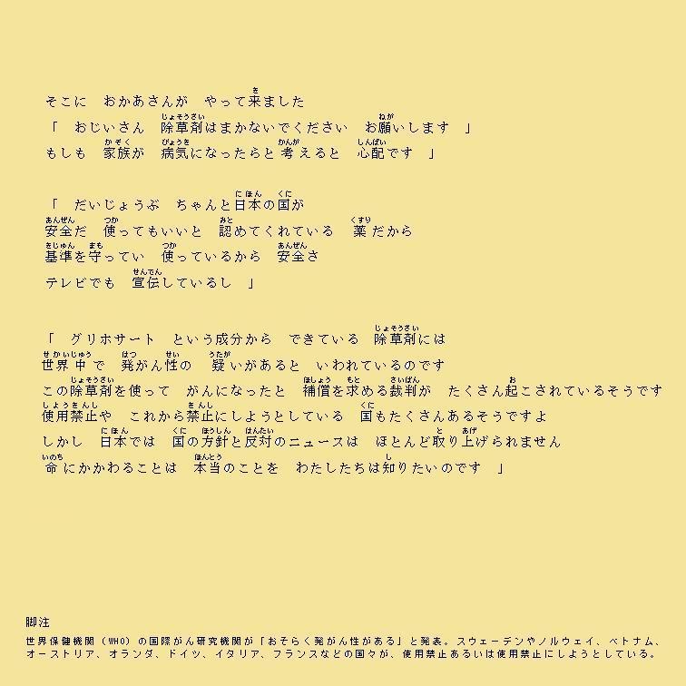 「 おじいさん 除草剤はまかないでください お願いします 」