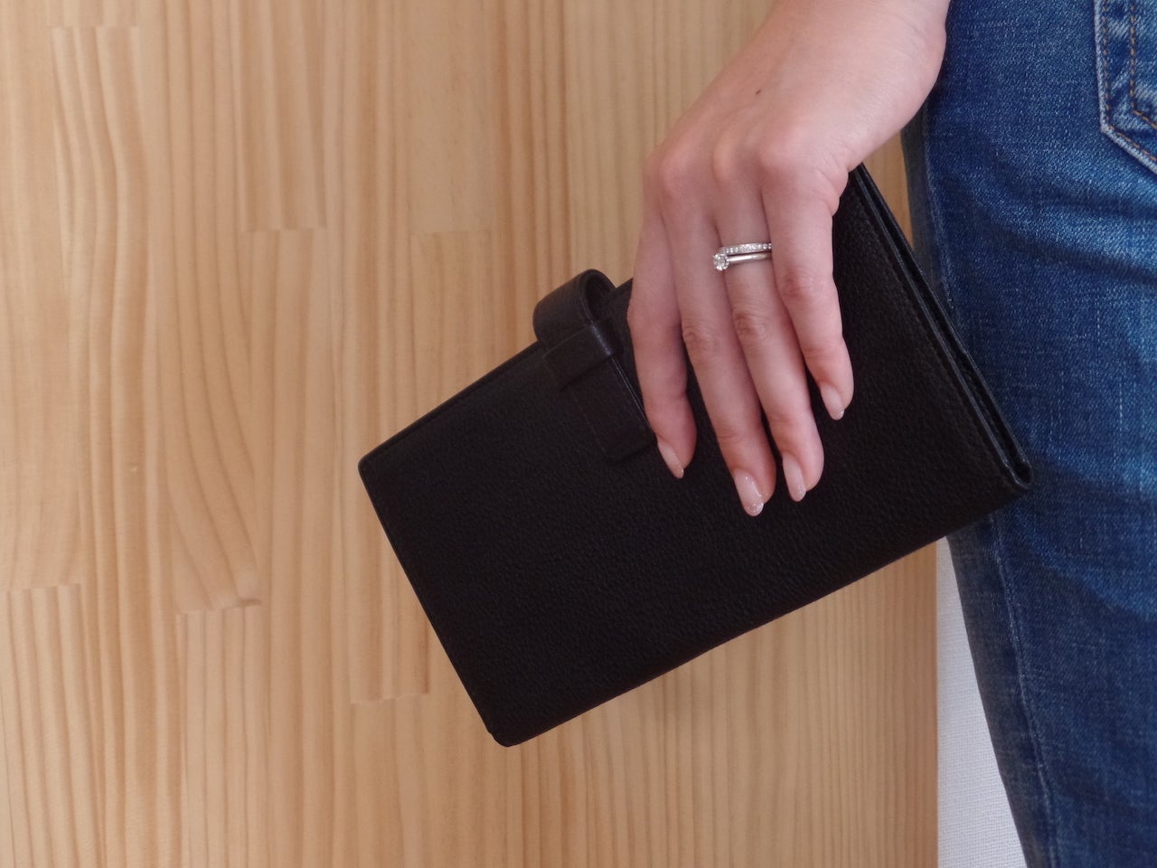 <サイズ> H 220mm x W 110mm(二つ折時、バンド箇所除く)