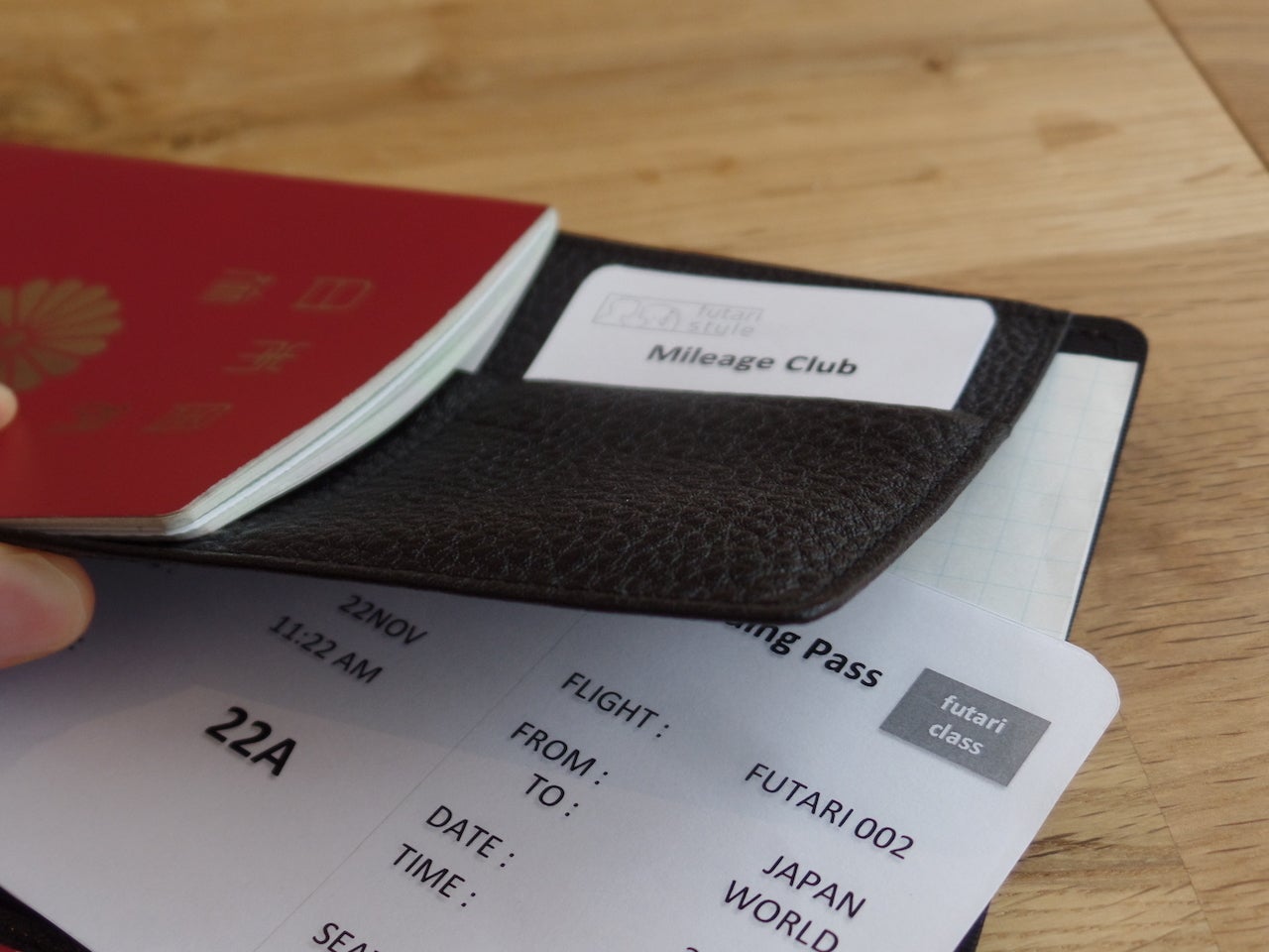 futari passportは、二人分のパスポート・搭乗券・カード類などあらゆる渡航書類一式をひとつにまとめて収納できます。