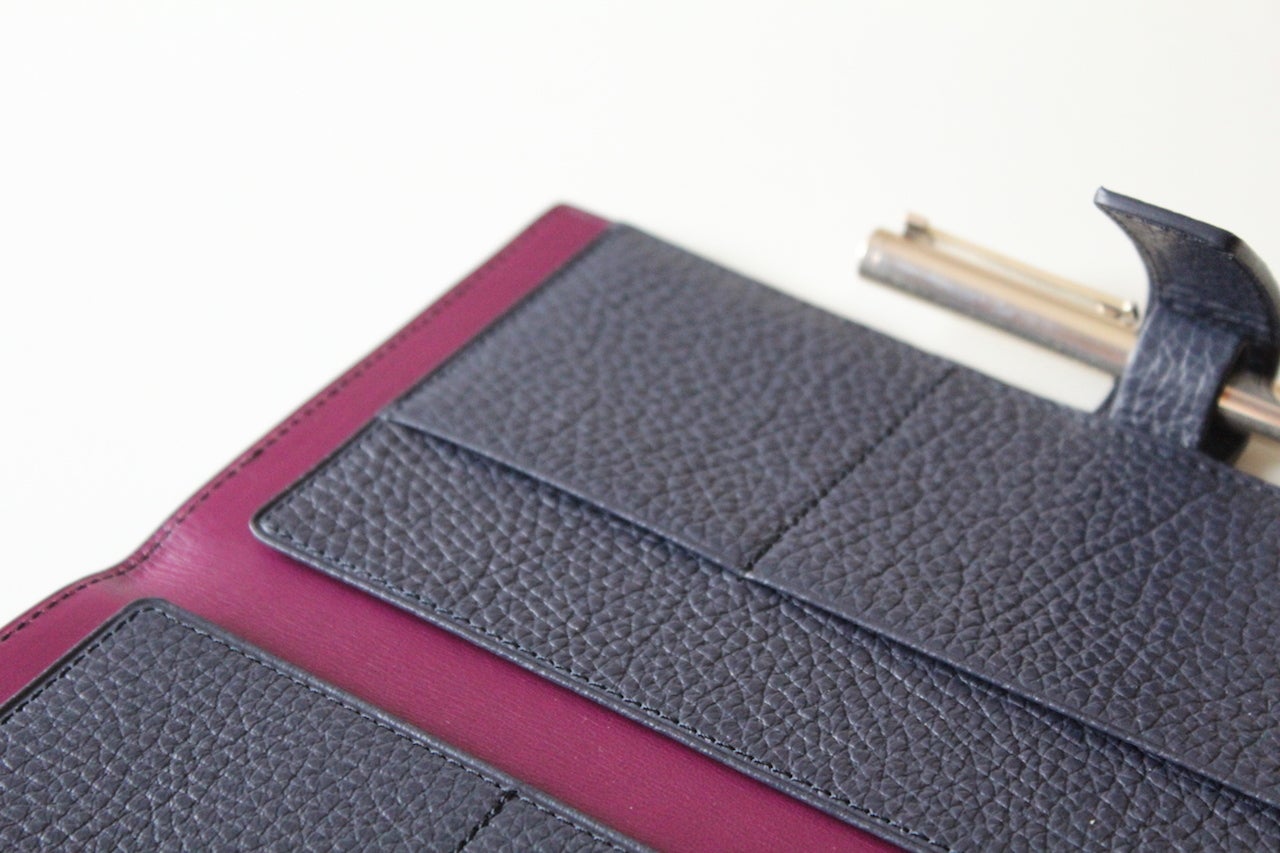 各色共に、表側とは異なるテクスチャーの色を内側平面に採用した品のあるバイカラー。