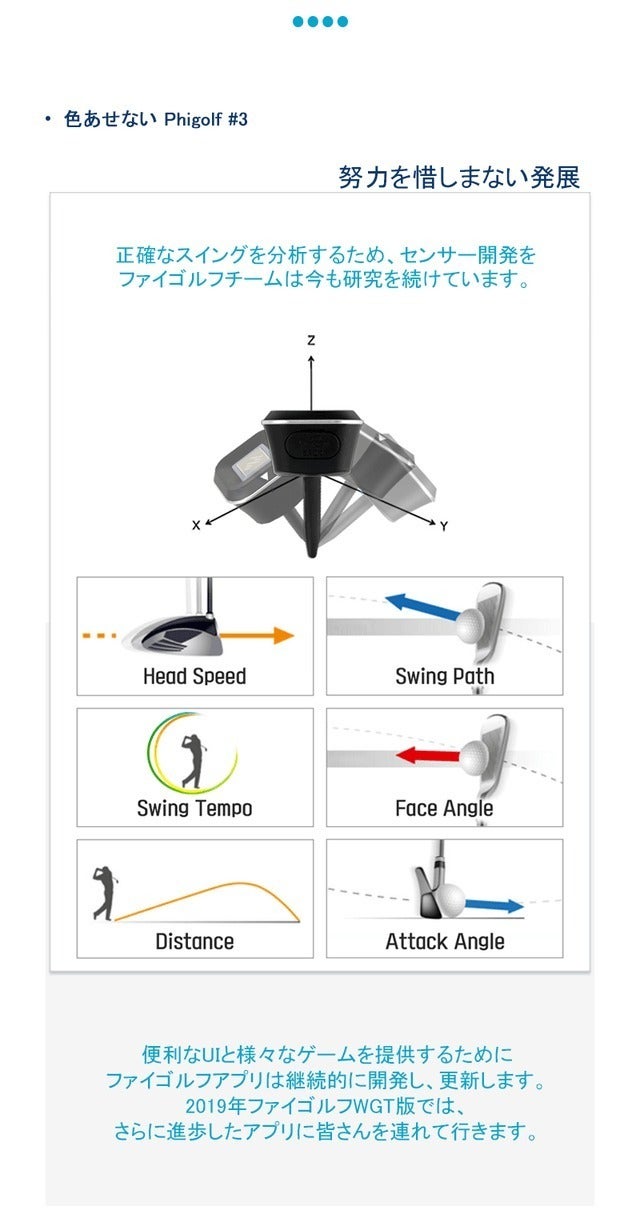 A. WGTゴルフは世界中2000万ユーザーが楽しんでいるモバイルゴルフゲームです。ファイゴルフのセンサーを利用して、WGTゲームを楽しむことができるようになります