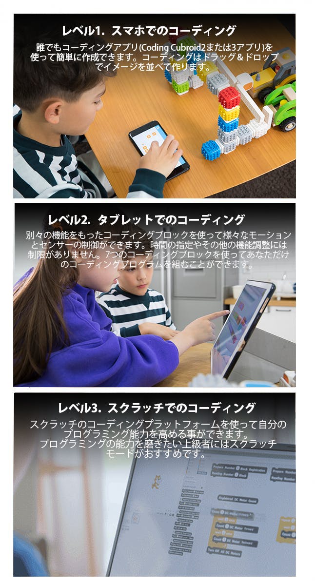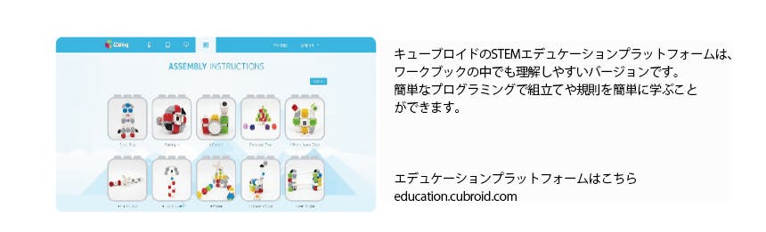● キューブロイドで子どもたちは自信を持ち、一つの達成感を味わえます。子どもたちは自分の手で作ったロボットを操作することができます。