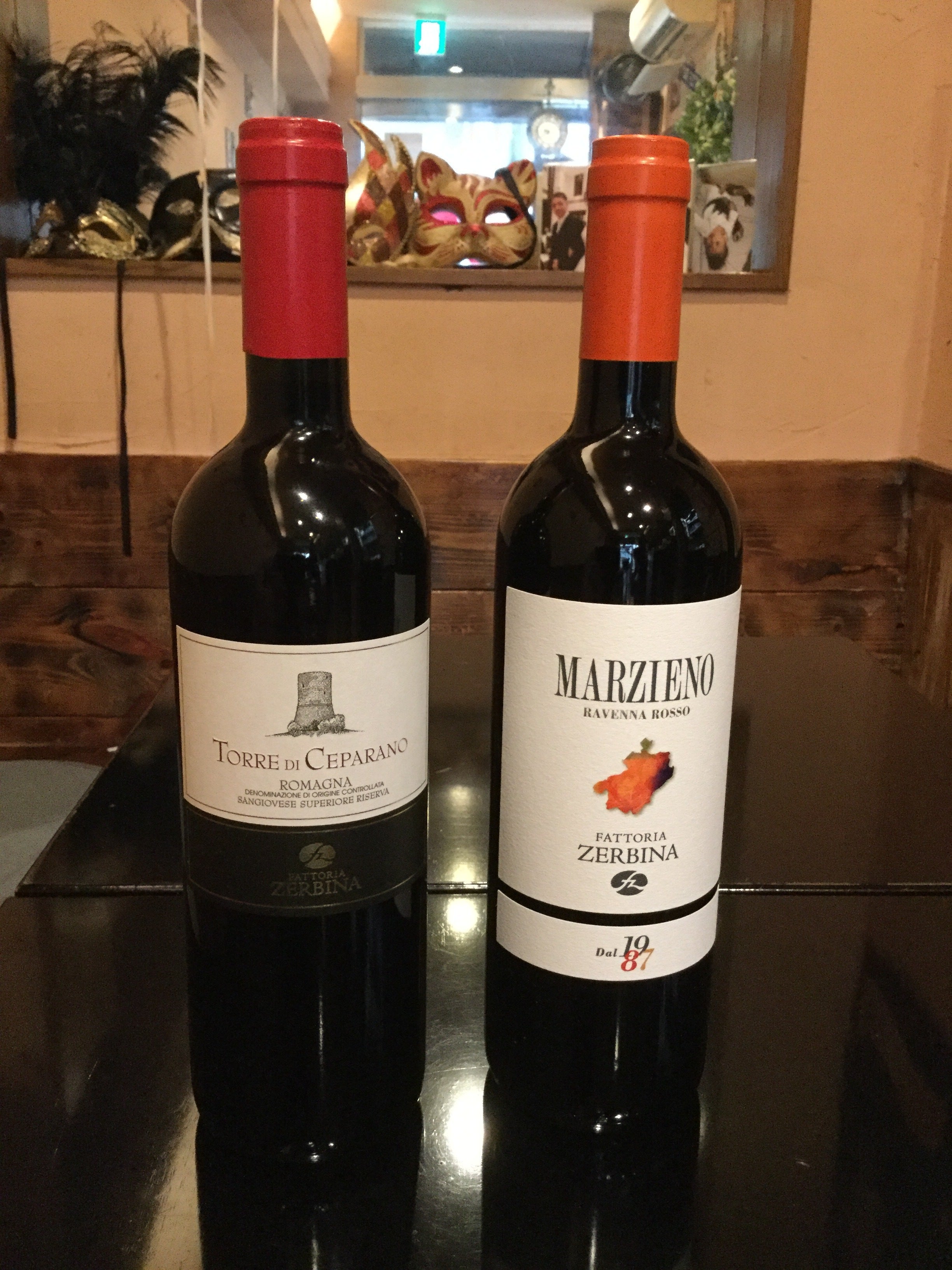 トスカーナの美味しいワインです。飲みに来てください。右)ゼルビーナ マルツィエノ'11 ボトル6,000円左)トッレ ディ チェパラノ'14 ボトル4,500円