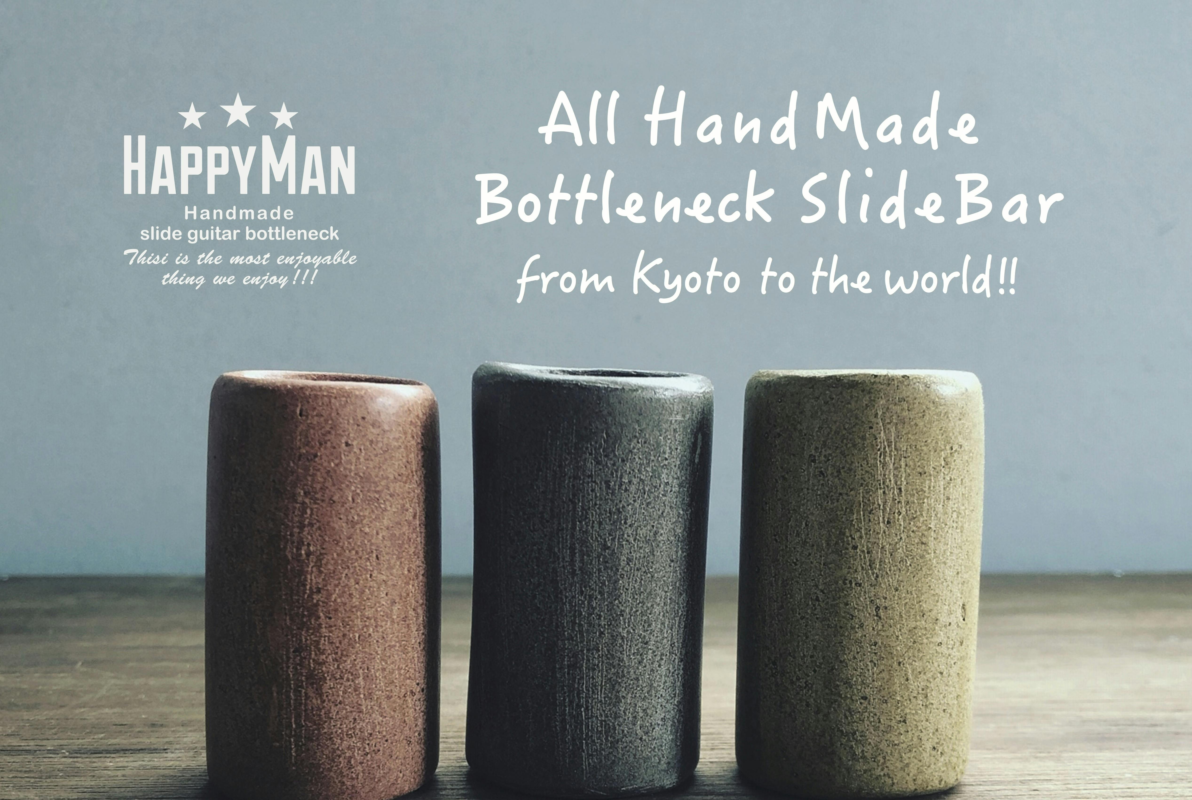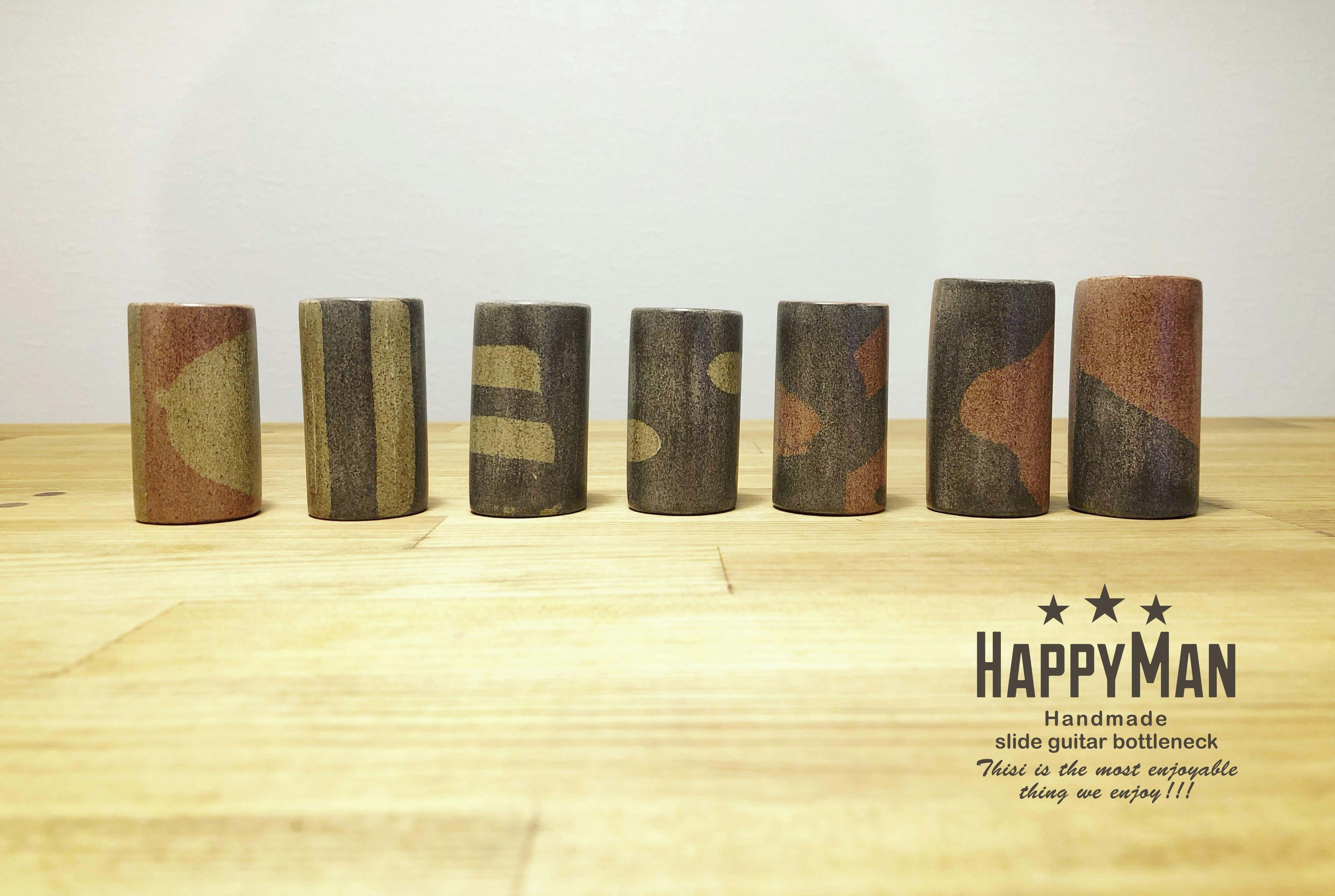 「HAPPYMAN」は全てハンドメイドによる、陶器製のギタースライドボトルネック工房です。ひとつひとつ手作業で、丁寧に制作しています。使えば使うほどあなた仕様に育っていくただひとつのスライドボトルです。