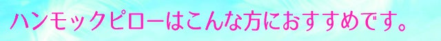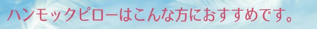 ・ハンモックピローで寝ると、いびきをかかなくなると妻に言われます。無呼吸も出なくなるそうです。普通の枕で寝るといびきをかくらしく、たいへんな効果があると思います。(50代男性)