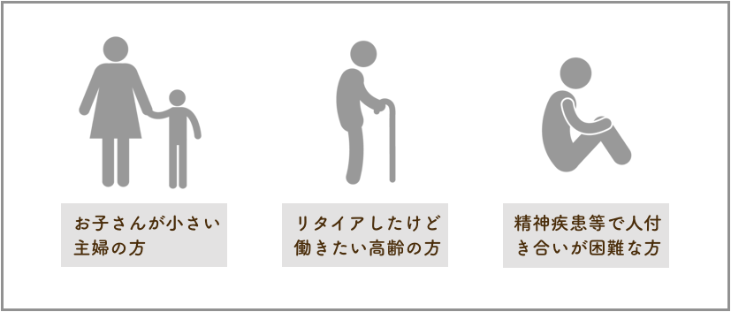 さまざまな理由から外に働きに出ることができない「在宅ワーク」を必要としている方たちです。