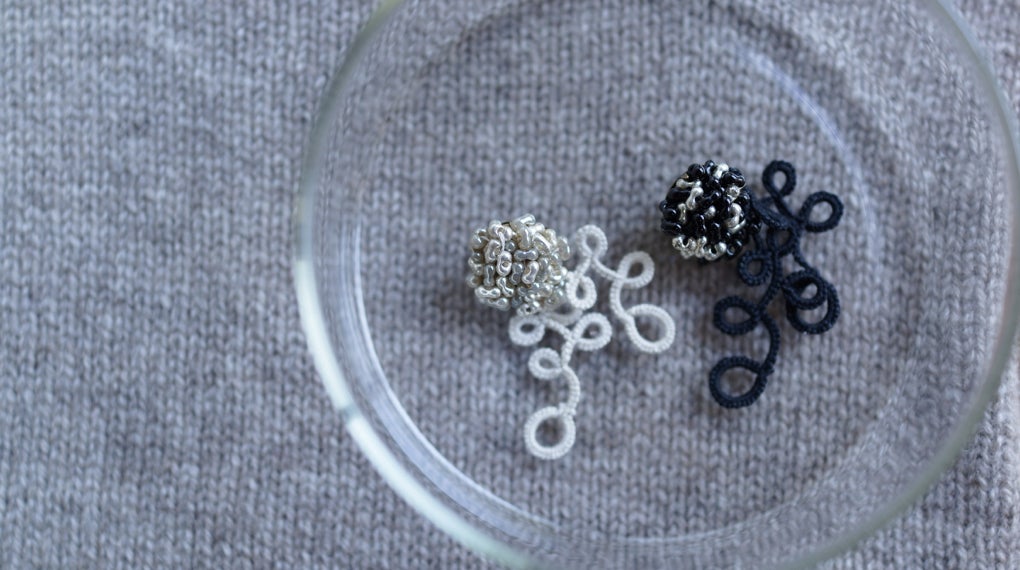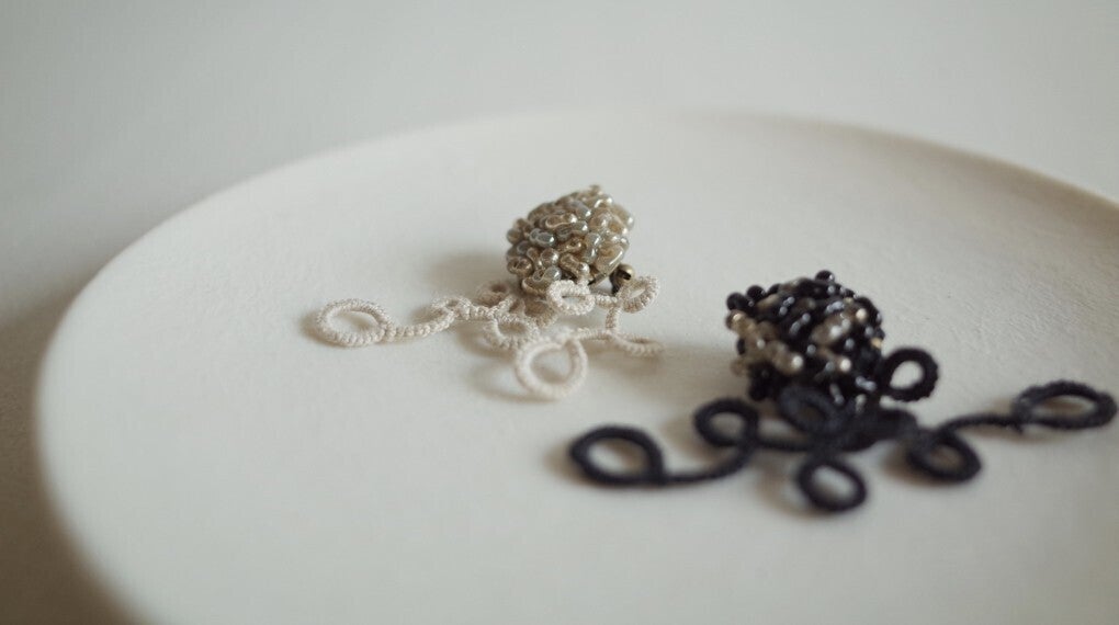 ・サイズ:ビーズ部分の直径1.5cm/レース部分を入れた全長4cm