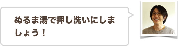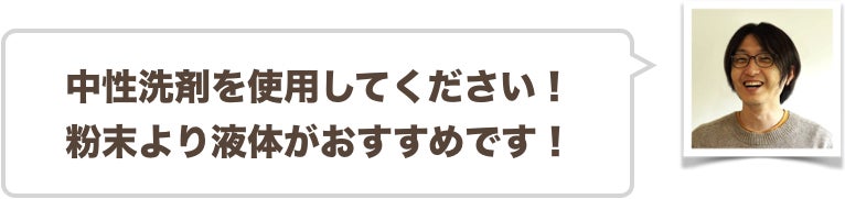 ご自宅で手洗いする場合は、以下の手順に従ってやってみてください。ゴシゴシ洗わなくても汚れは落ちますので、優しく取り扱うようにしてください。