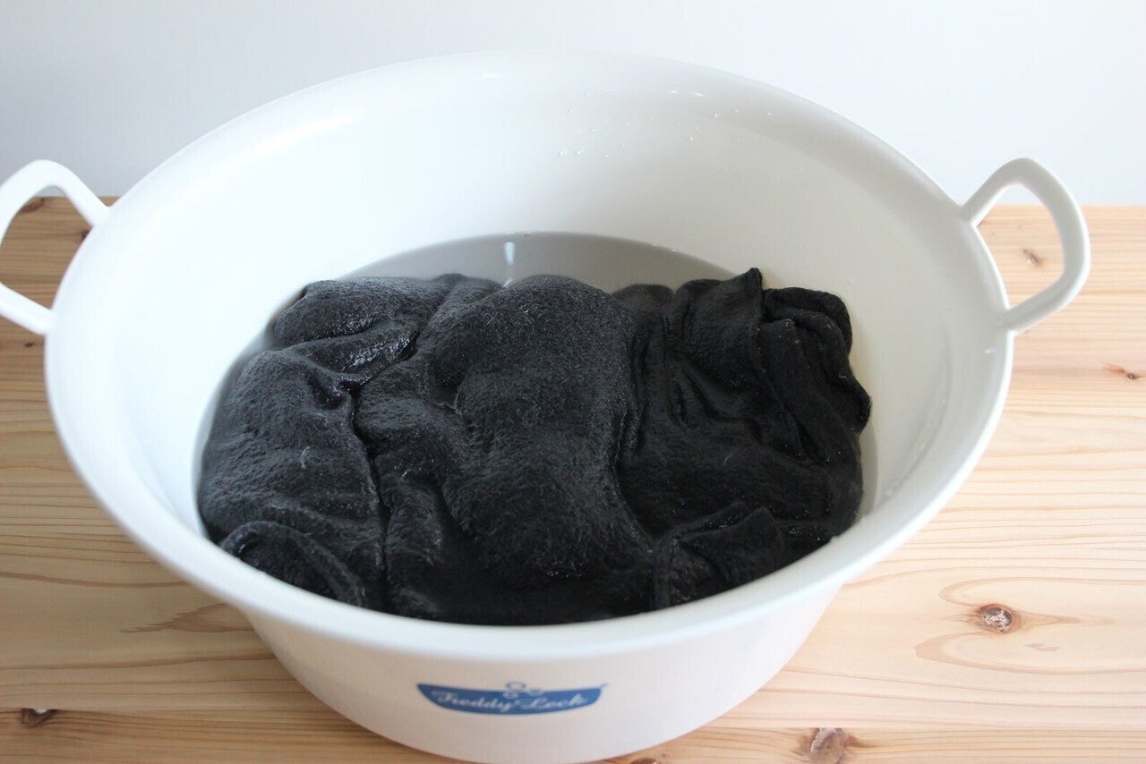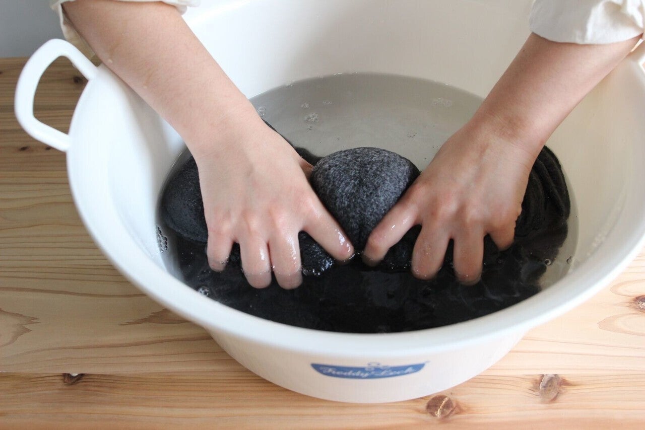 色が変わり水分が全体に行き渡ったら、軽く押し洗いをします(押し洗いは2回程度までにしましょう)。1回の押し洗いは1分程度にして、強くもまないようにしてください。