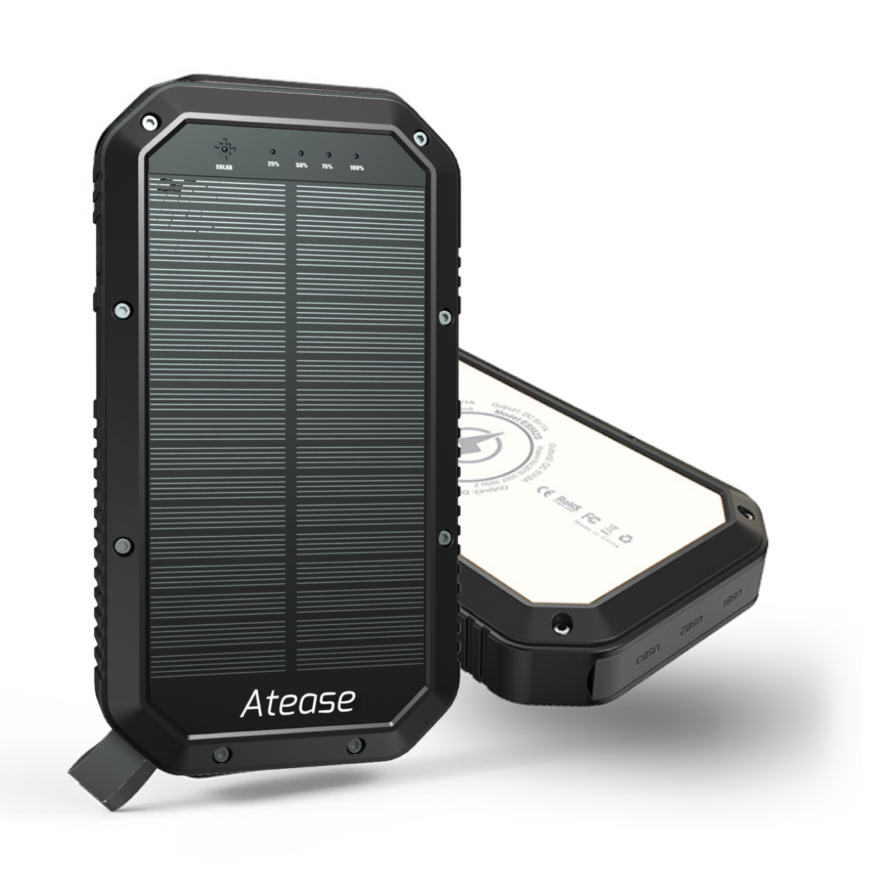 A: Ateaseの容量は20,000mAh もしくは74Wh があり、太陽光だけでAteaseをフルチャージするためには長時間がかかり現実的ではありません。しかし、iPhone を充電するための容量を太陽光を利用し得ることができます。いざというときは力を発揮します。