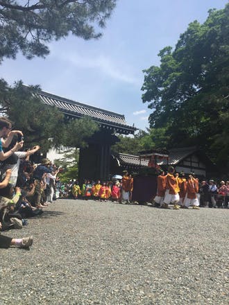 2017/05/15 21:38本日5月15日は京都三大祭りの1つ葵祭。行列が出発する御所までは宿から自転車で約15分!まっすぐ進むだけの道のりです。 みなさん葵の葉を身に付けていてるんですねー。今年初めて近くで見て知りました。正直、特に山場もなく祇園祭のように飲み歩けるわけでもなく、淡々と進んでいく行列を眺めるだけですが、貴族文化の優雅なお祭り、平安時代に想いを馳せてその場にいると、少しタイムスリップ出来てしまいそうな不思議な時間を過ごせました。牛車のゆったりずっしり進む姿、時間がゆっくり進みますねー。 年がら年中行事ごとが盛りだくさんなのも、やっぱり古都ならではですね。 もっと見る