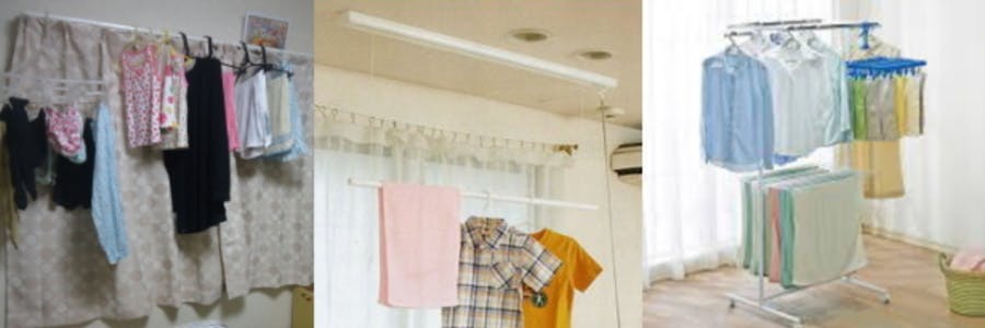 『カーテンレールにハンガーを掛けたりして、カーテンや洗濯ものにはあまり清潔とは言えません。』