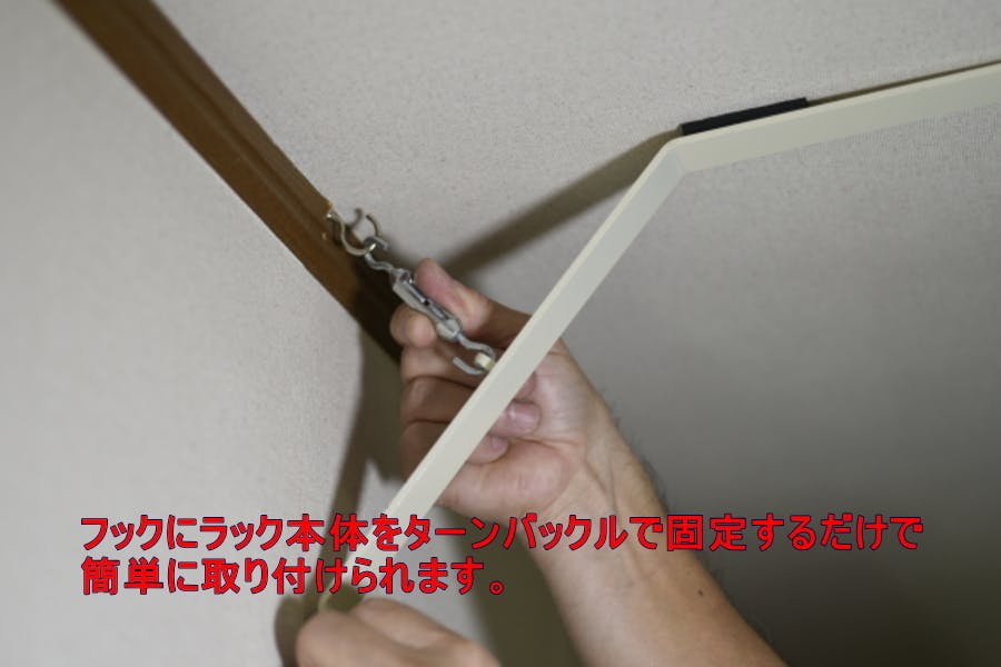 ・スーパーラック本体をフックにかけてターンバックルで締め付けるだけです。