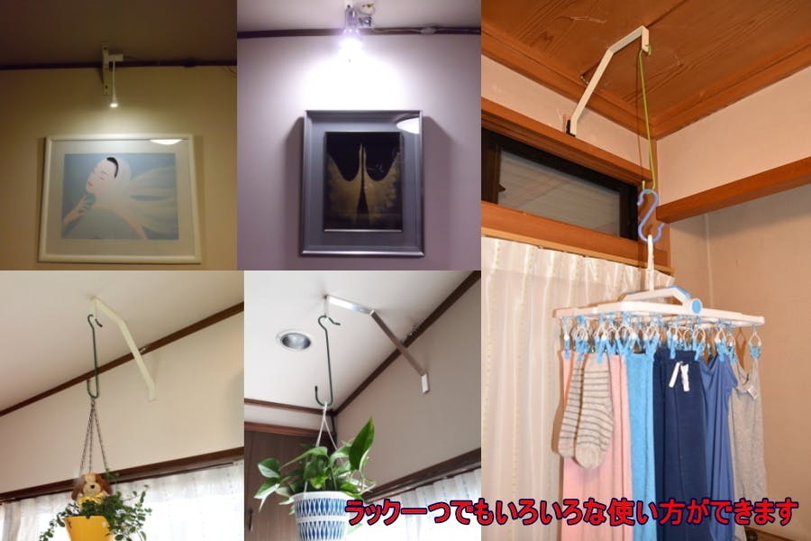 ・その他の使い方として、観葉植物などを吊るしたり、ライトや監視カメラのステーとして、場所を選ばず壁や天井のコーナーがあればどこにでも取り付けることができます。