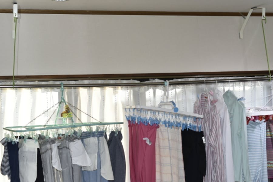 ・天井に穴をあけたり補強をしなくても強度があるので、たくさんの洗濯物が干せます。