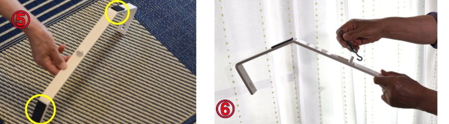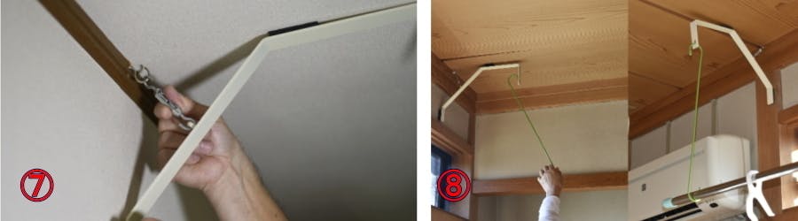 ⑧ しっかり固定されたのを確認してお好みの長さのフックをひっかけて、物干しざおを架けます。
