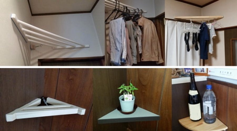 元々は部屋のコーナーに取り付ける洋服掛けをイメージして開発しました。娘から、ワンルームの部屋のコーナーに取り付ける突っ張り棒はないの?という一言から始まりました。