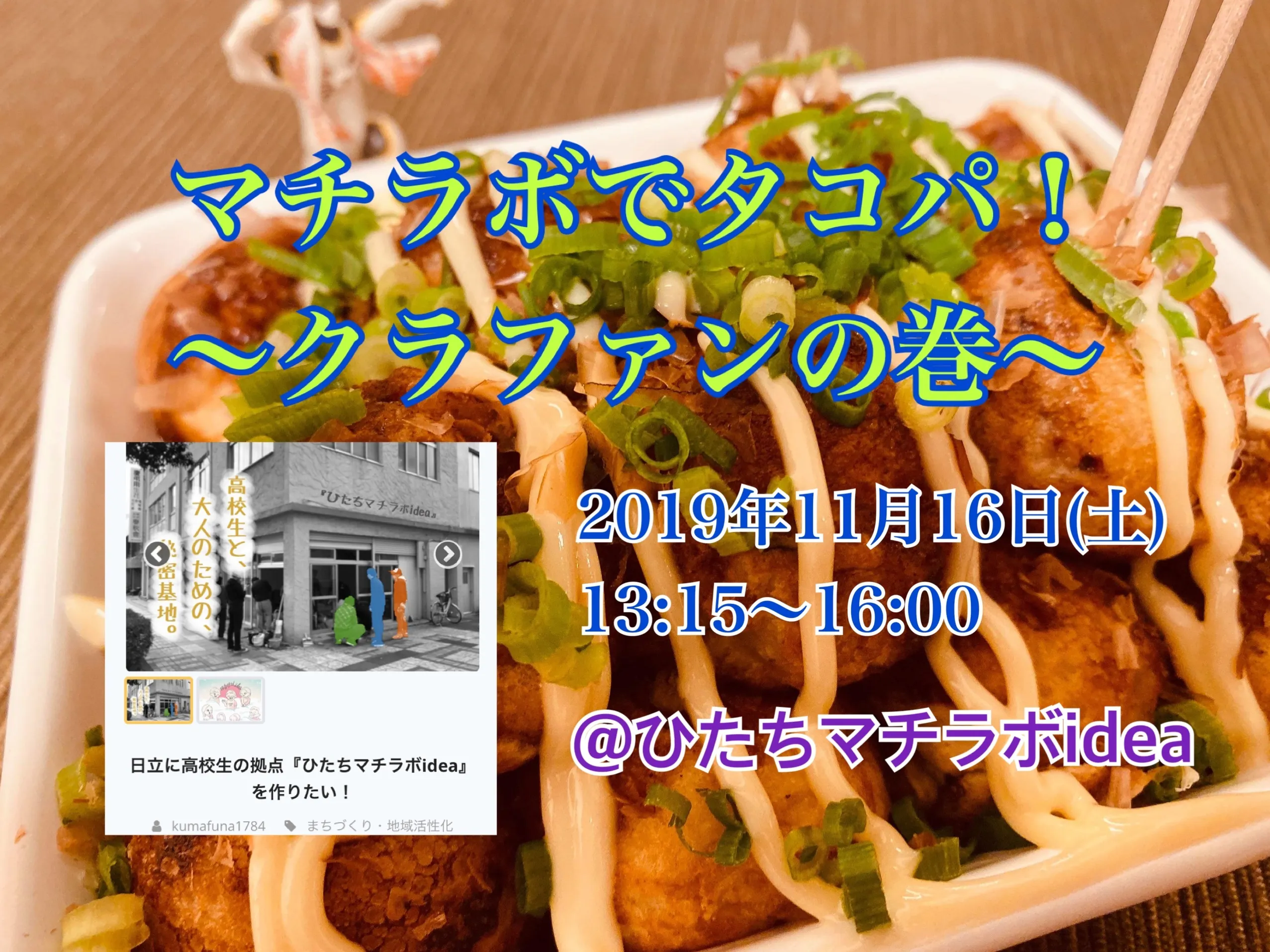 11月16日に、ideaでマチラボでタコパ!〜クラファンの巻〜を開催しました。