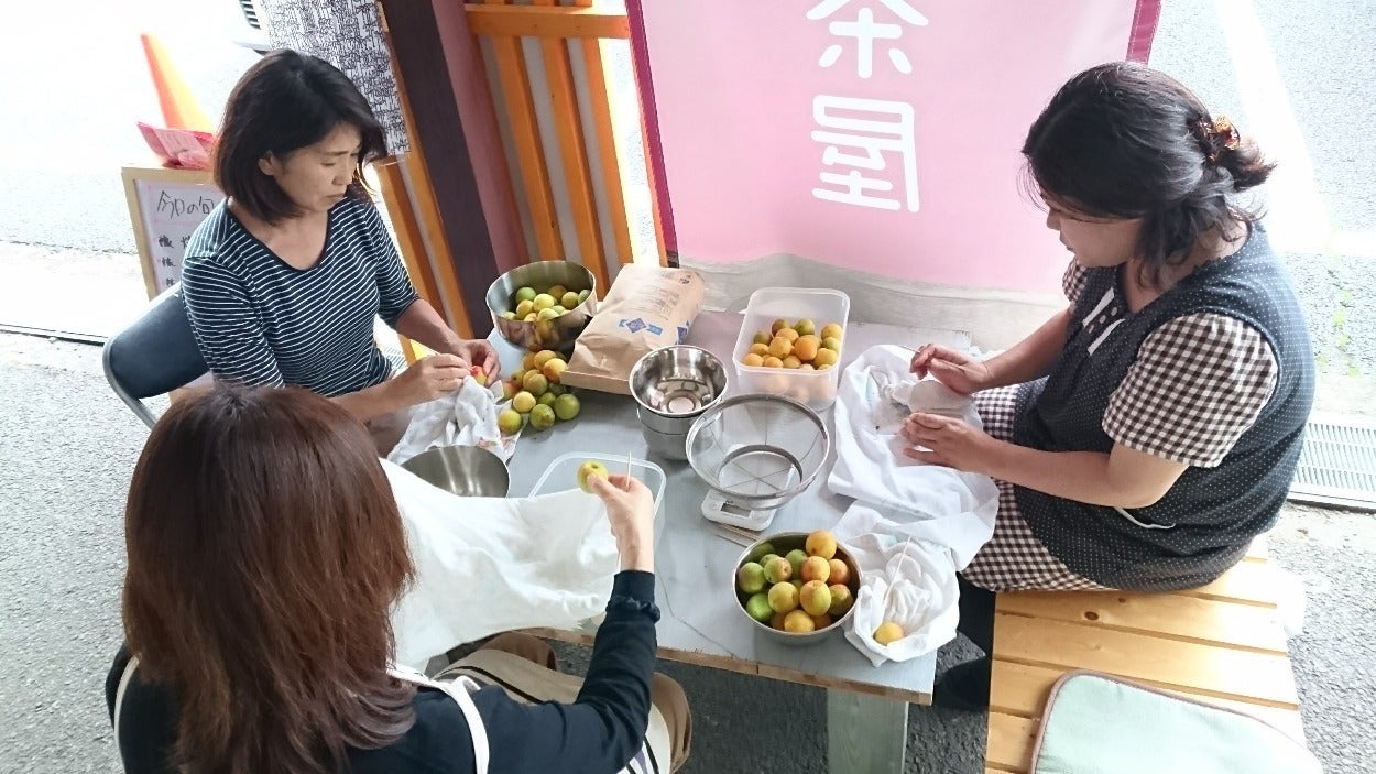 『畑に入るのが初めて』・『梅を自分で収穫するのが初めて』・『こうやって作業するんですね』など、皆さん目をキラキラさせて作業します。