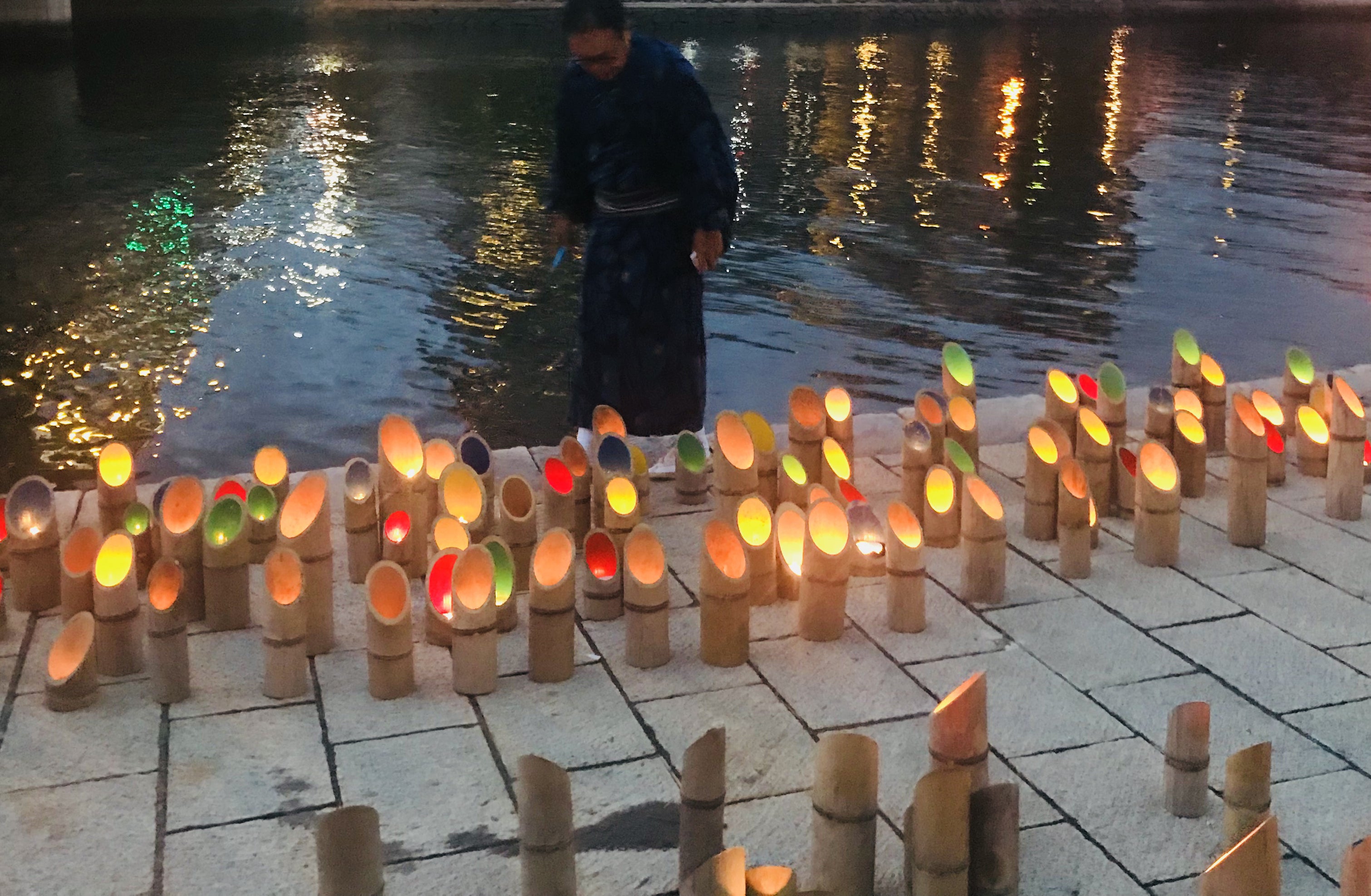東日本大震災後の、「日本全体が暗い雰囲気になり日本人の心を失いかけた時期に、お盆の送り火のように心の安寧を願い」2011年から始められ、今年で9回目。「街の喧騒(けんそう)の中にありながら、ゆったりとした時間が流れる。夏の夕暮れ時、涼しい風が渡る紫川のそばで過ぎ去ろうとする夏を楽しんでほしい」