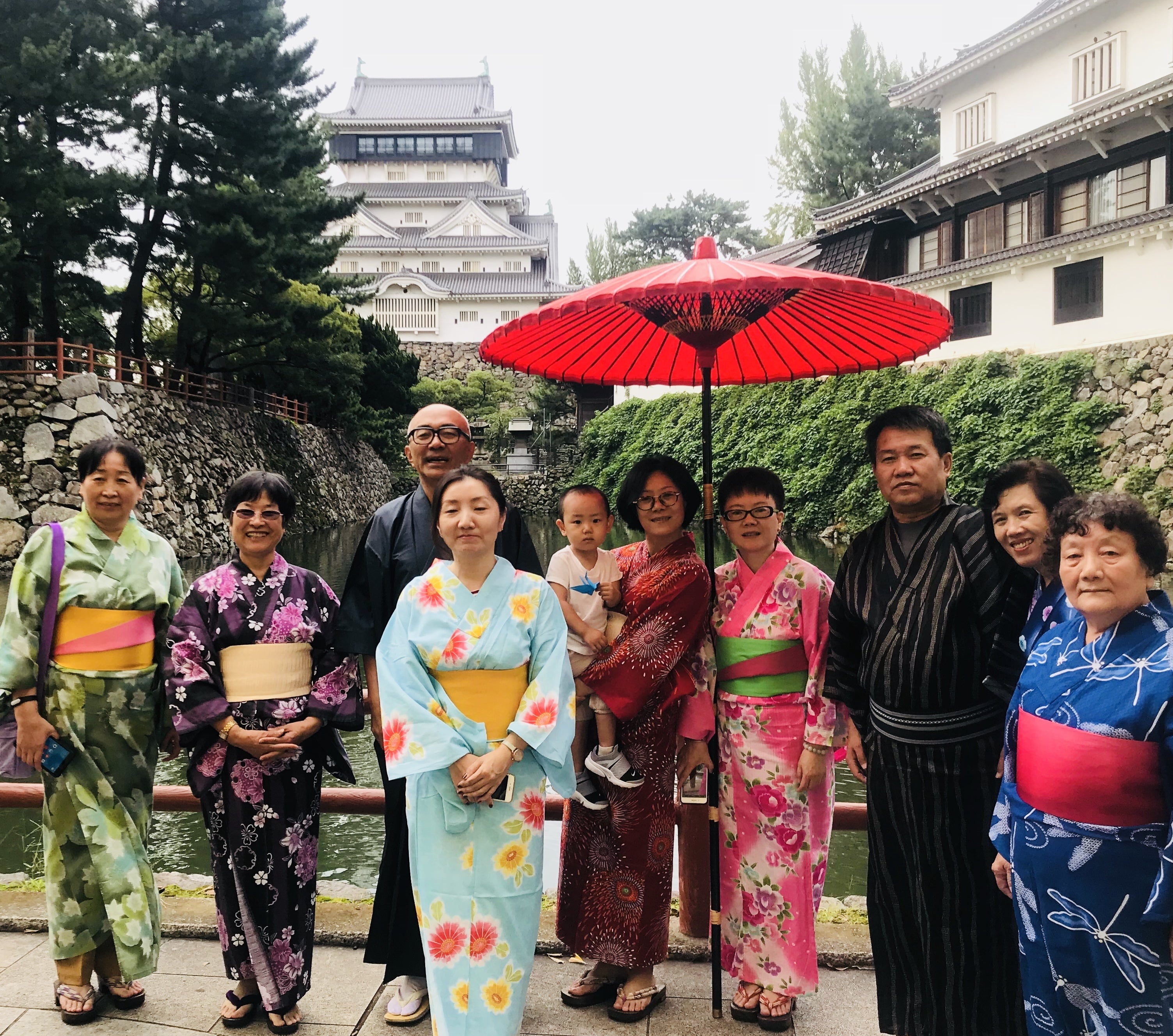 小倉城にお越しの外国人環境客に向けて、着物の着付けサービスやお茶の接待をさせて頂いております。