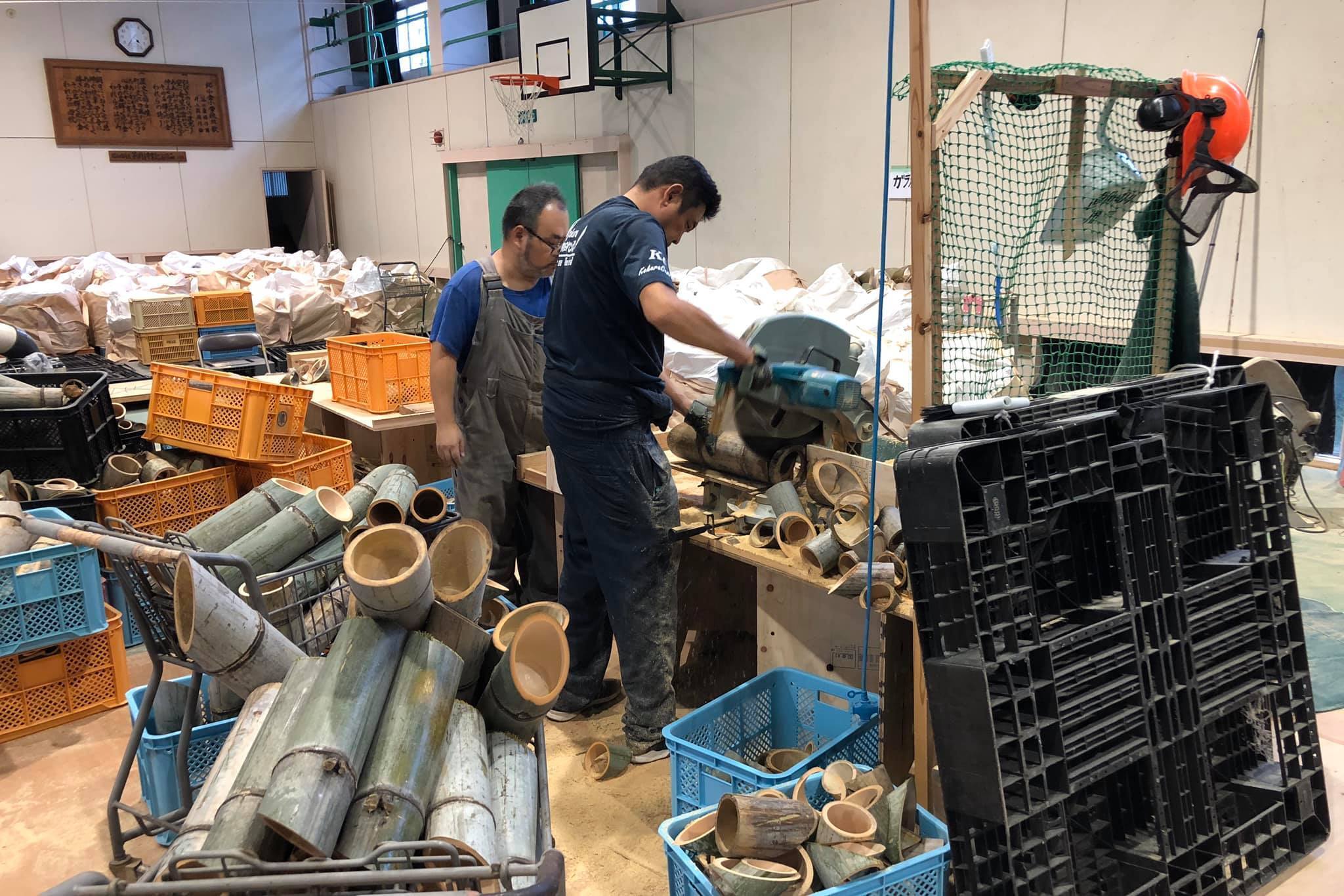 今回は、合馬ブランドで有名なタケノコ産地の生産竹林からの間引き竹を主に活用。
