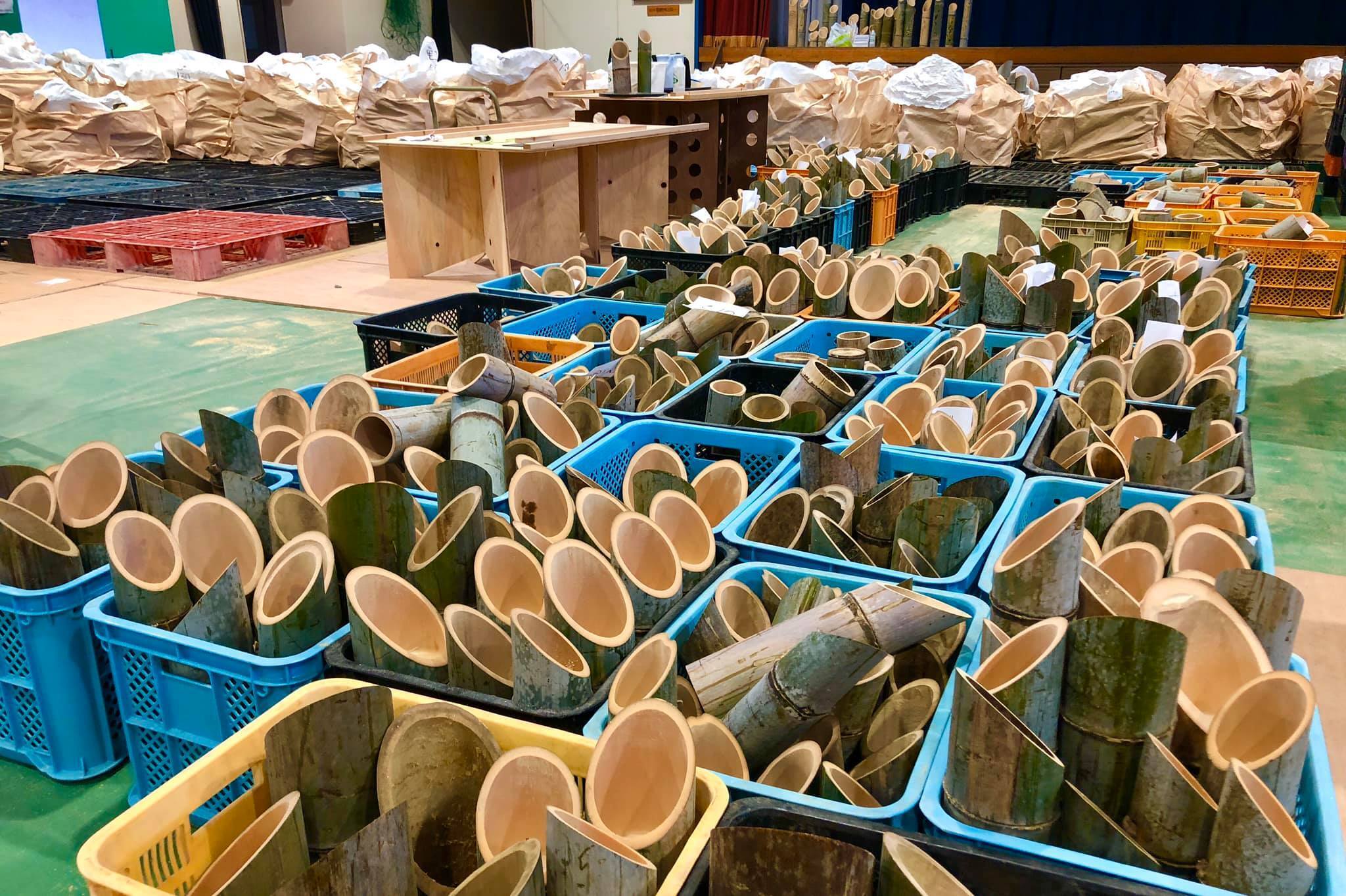 現在、竹灯籠づくりの真っ最中です。地域の子供達も自分事として参加してくれており、楽しみながら、地域の賑わいづくりや環境問題に関わるきっかけとして喜んでおります。