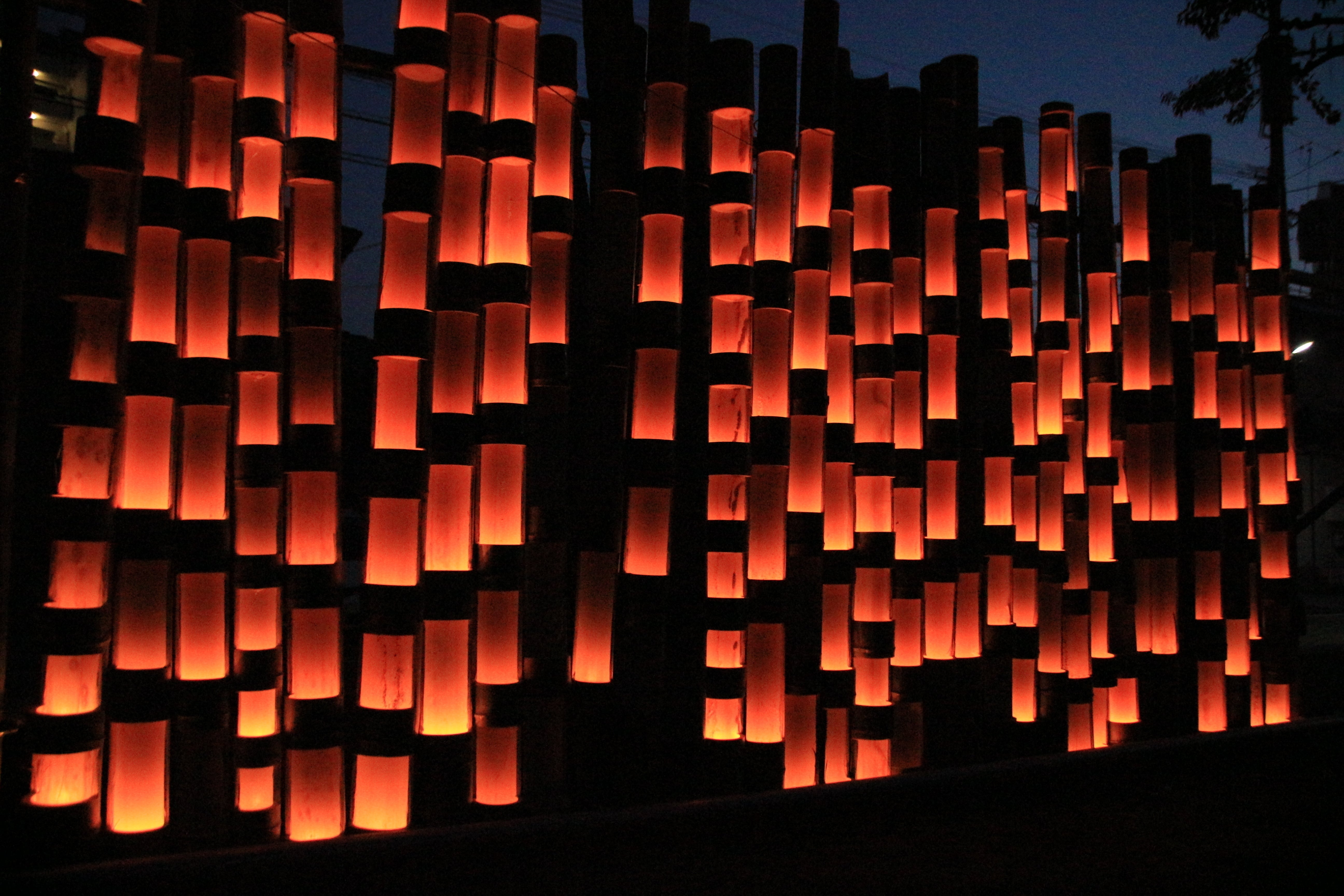 竹を灯籠への加工は河内地区で竹林伐採・竹林整備活動をし、小倉城小笠原藩内の行橋に拠点を移し竹林伐採・竹林整備・里山保全をしている「里山復帰」が中心となり主に北九州地区のボランティアの方々と共に灯籠づくりをします。是非ボランティアでのお手伝いもお願い致します。