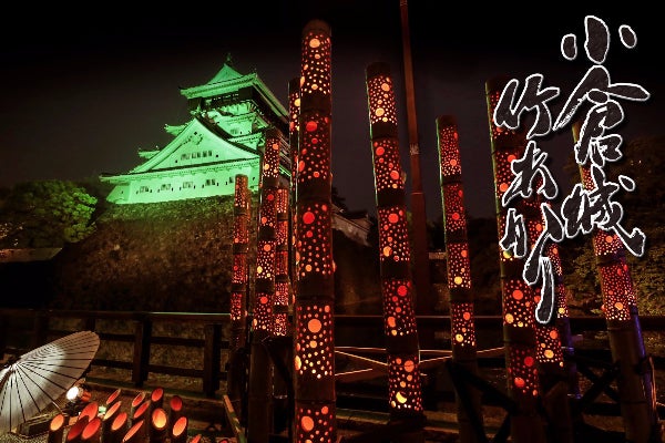 福岡県内で唯一の天守閣のある北九州市小倉の小倉城に、11月2日(土)3日(日)4日(月)の17時から21時に、竹灯籠や和紙灯籠を約10,000個飾ります。遠来のお客様へはおもてなしの気持ちでお迎えし、地域の皆様には、我が街に夢を持っていただきたいと思います。