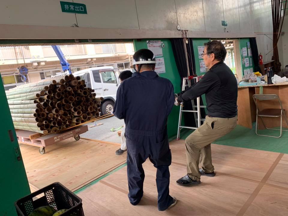 【 作成部会進捗状況報告 9/16 】きょうのボランティアさん門司の柳西中生が参加くださいましたまた、不足のプラパレットも戸畑祇園中原大山笠若手リーダーのご尽力で80近くが調達可能となり、先が見えてきましたまさにひとつひとつが市民手作りです今日は大山組さんで竹材2束を搬入ガンガン切っています北小倉小学校のお隣にあたる真颯館高校の校長先生に実行委員長とともに趣旨をご説明にあがりました早速建築科の先生と生徒さんのキーマンがお越しになりパートを任せて欲しいとデザインも設営も自由な発想で創作燈籠を作っていただきます10月20日納期でお願いしました虎ノ門からの突き当たりは真颯館高校のロゴか校名が入った竹灯籠オブジェが見られることになりましょう