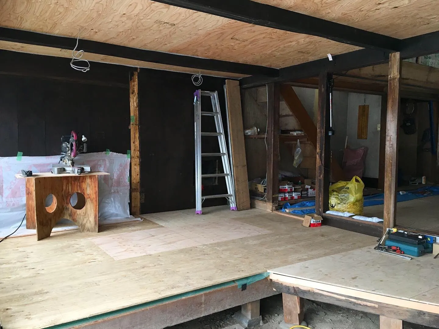 2019/08/28 07:54気がつけば今週土曜日で8月も終わります。お盆を過ぎてからの諏訪は、一気に空気が秋めいて朝晩は寒いほどです。。。私は毛布2枚に包まって寝ています・・・・今からこんなんでは冬はどうなることやら・・・・布団に押しつぶされるくらい布団かけないと寝れないかも・・・・逆に寝れないか。。。笑と、そんなこんなですが、日々現場は進んでおります!!!2ヶ月前の現場ほとんど手を着けていない状態で、向こう側の部屋と手前の部屋がツーツーです。現在の現場1枚目の写真と同じ位置から撮りました!左側にバックヤードができ右側の壁の下地ができ、向こう側と仕切りができました!これだと見えませんが、向こう側の造作も進んでいます!入り口側からカウンターのベースができて、手前の小上がりスペースに腰壁の下地が立ち上がりました!解体をした時に出てきたラワン材とリビセンで買ったラワン材でカウンターの笠木もつきました!こんな感じで日々グングンお店としての空間が浮かび上がってきています。こんな感じで空間が立ち上がってくると、少しづつ料理のイメージやこれからどんなことを準備しようかということが想像できるようになって楽しいです!13年前に料理の仕事を始めてから今まで、こんなに料理の仕事を休むこともなかったので、今は現場に立ちながら日々これからのことを想像するのがすごく楽しいです。仕事をしていない不安もあるけれど、こうした機会がなかったら得られなかった物事も多く、ありがたいなと感謝の日々・・・・・1ヶ月後くらいにはもうほぼ完成?くらいまでいけるかな・・・・・今日も頑張るぞ!!! もっと見る
