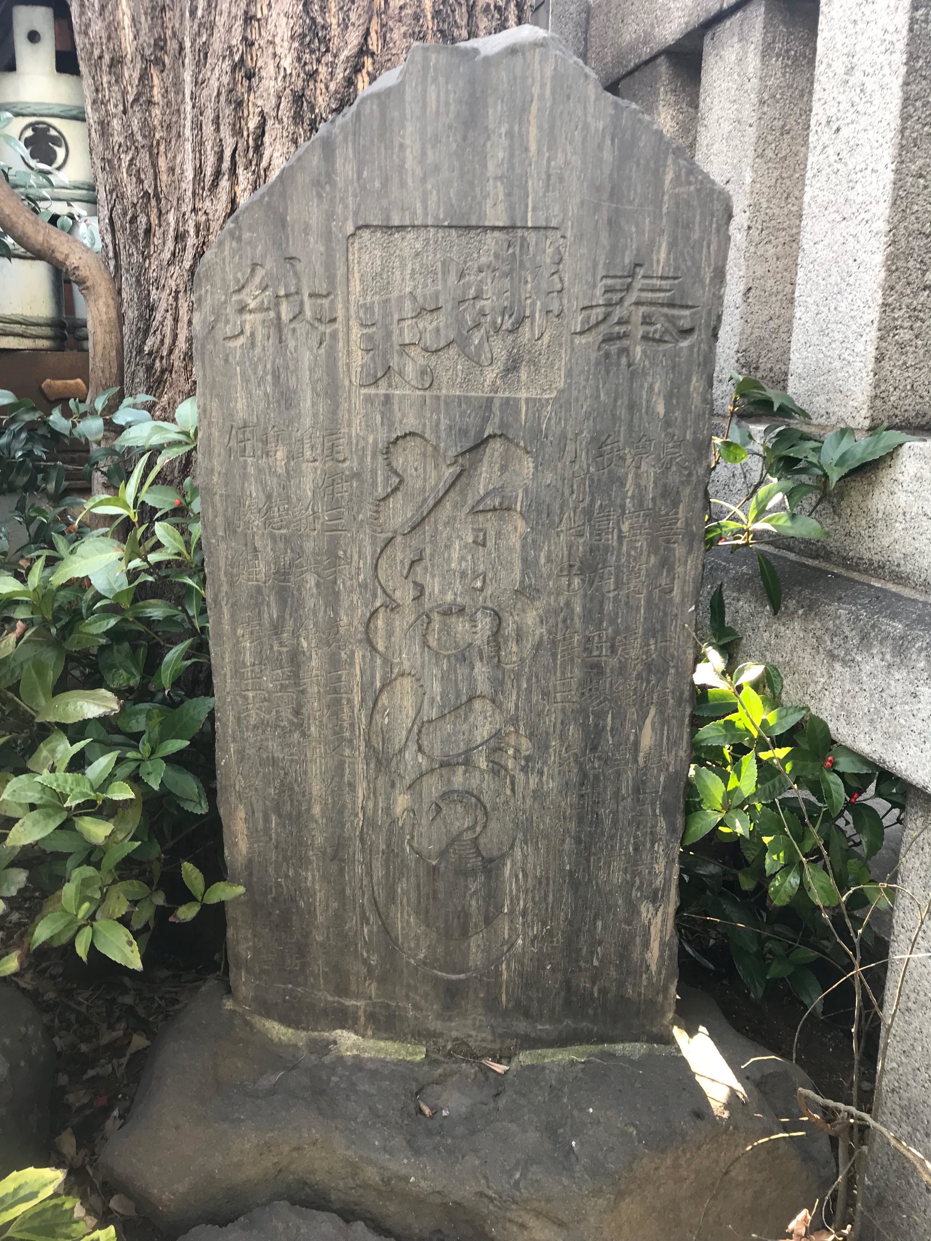 寅吉さんが保管していた「手ぬぐい襦袢」に染め上げられていた「魚河岸」の文字は日本橋から築地へ魚市場が移転してきた当時、波除神社に奉納された石碑に彫られた「魚河岸」の文字と同じものであることがわかりました。