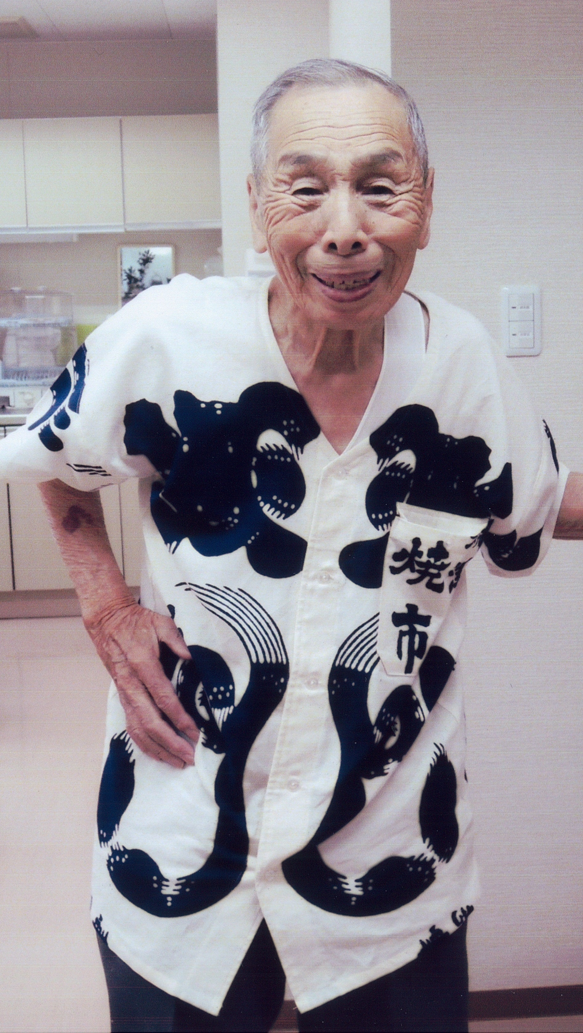 焼津で昔から水産会社を経営し、「焼津浜言葉を遺す会」<浜言葉:海沿いの住民を中心に使われていた焼津独特の方言を遺すために平成15年に結成された>の会長もつとめている寅吉さんのご自宅に何度もお邪魔して、「焼津」や「焼津港」や「魚河岸シャツ」の歴史についての話を伺っているうちに、寅吉さんが大切にしていた貴重な「手ぬぐい襦袢(じゅばん)」の存在を知ることとなりました。