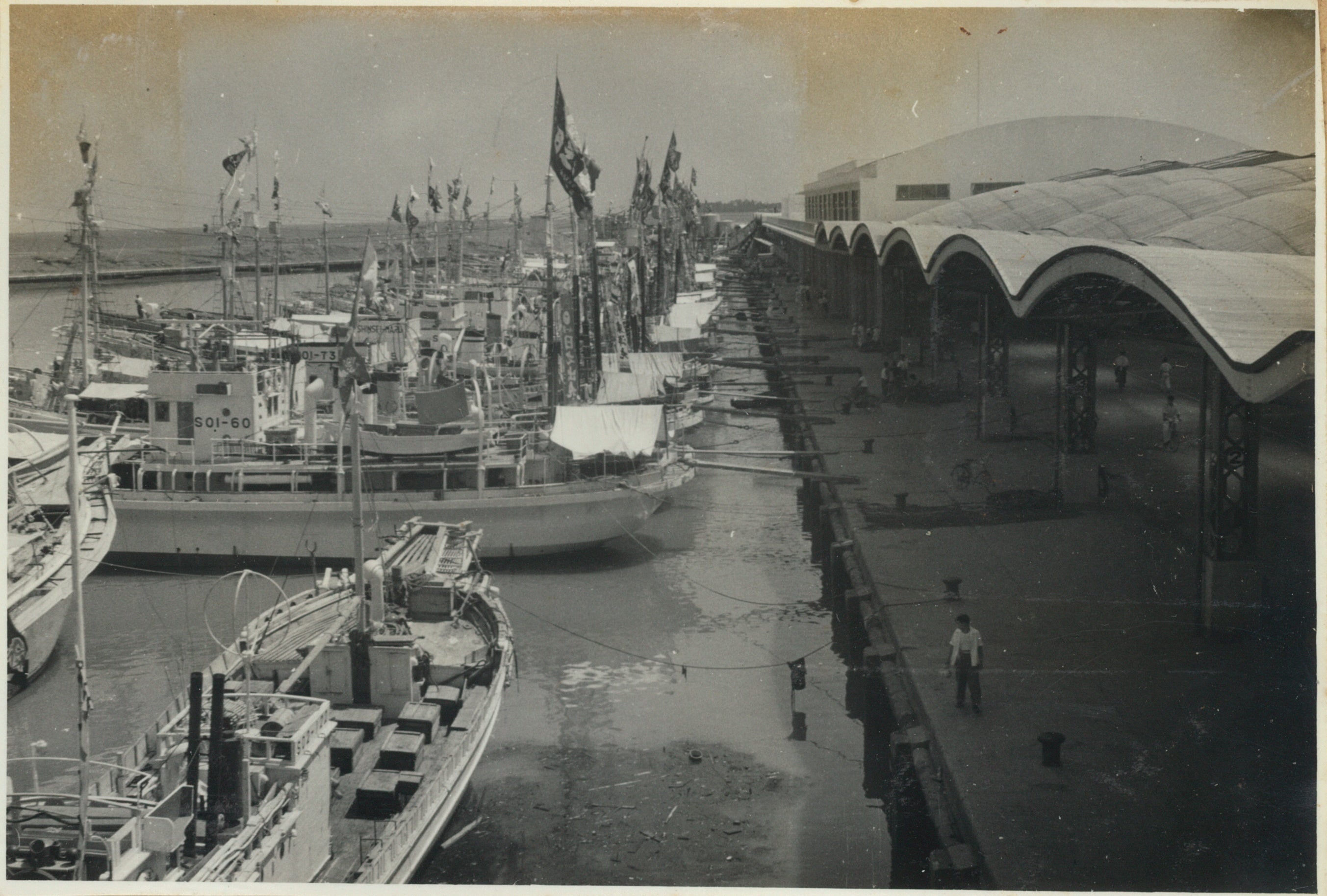 全盛期(昭和40年代)の焼津港。一日中、威勢のいい仲買人の声が響きわたっておりました!! このように焼津は「漁業のまち」として発展してきました。