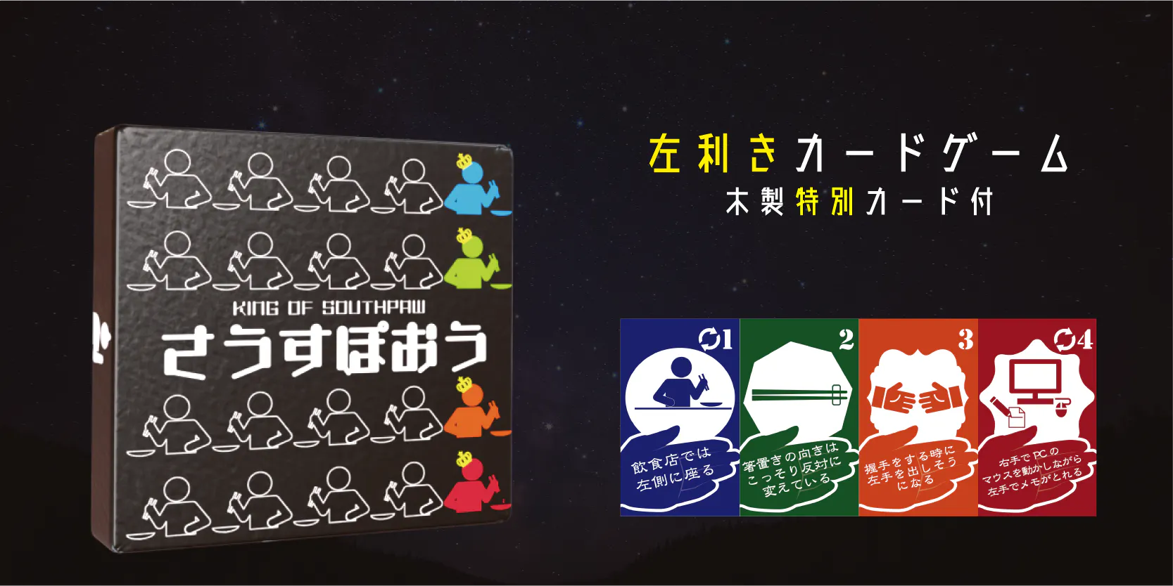 そんな左利きの切なさを消し去ることができないのなら、その切なさに「カードゲームとして楽しめる」という価値を付けて、ポジティブに向き合えるようになりたい。さうすぽおうは、そうした想いのもと制作されました。