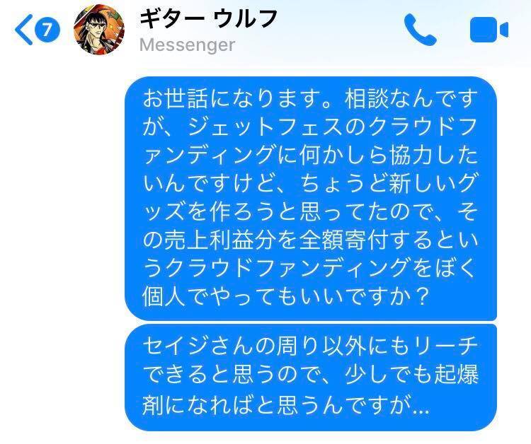 ギターウルフセイジさんにも、いろんな事を教えていただきました。そんなセイジさんが全身全霊で挑んでいるこのジェットフェスを応援したい!そんな気持ちで今、このプロジェクト文を書いています。
