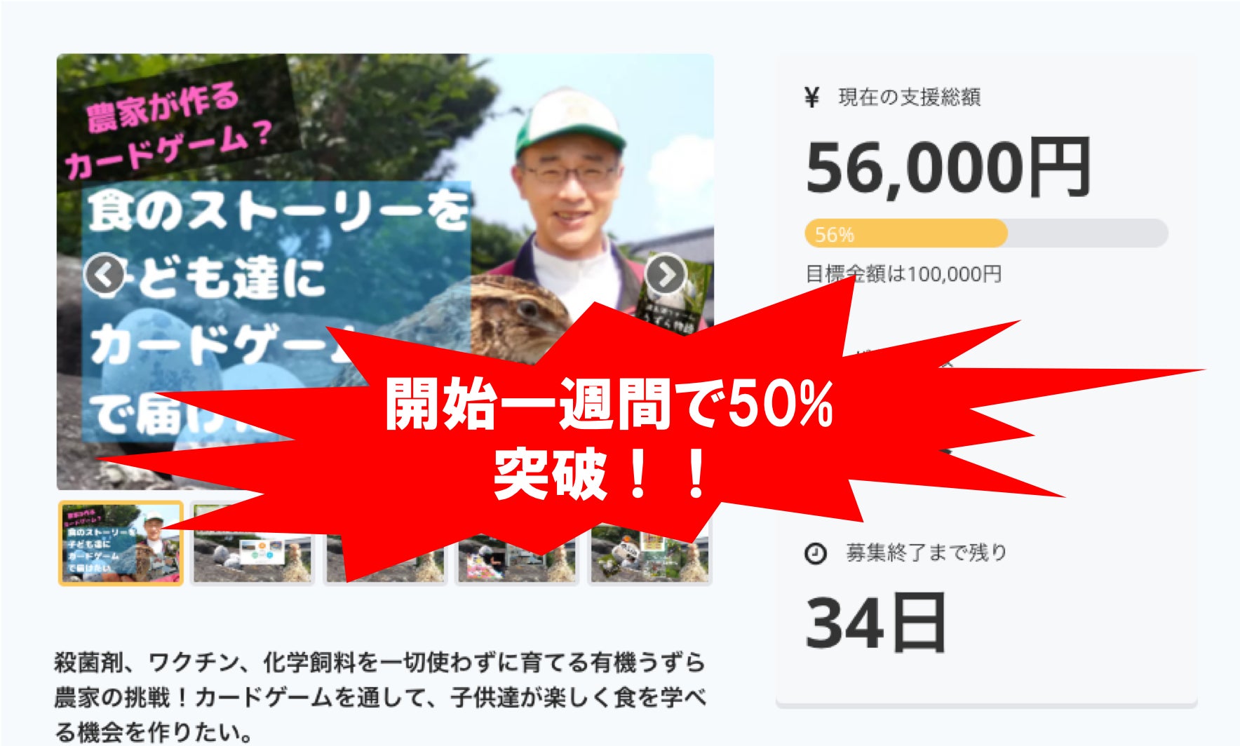 みなさまの熱い支援のおかげで、クラウドファンディング開始からたった一週間で達成率が56%にまでいくことができました!!!