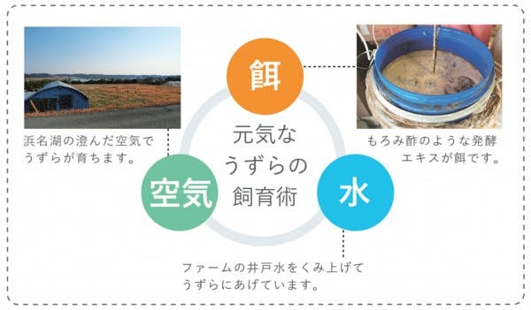 それから、ウズラの糞と発酵菌を混ぜ合わせて作った有機肥料をつくり、それで野菜を育て、浜名湖沿岸で廃棄される牡蠣殻による悪臭を発酵液による解決、さらにそれらをウズラ肥料と掛け合わせて強力な肥料にとありとあらゆる行き過ぎた生産によって発生する一次産業の課題を解決していきました。