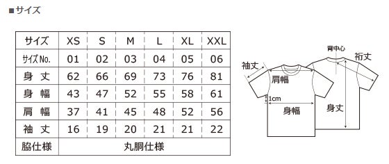 ※Tシャツのサイズは以下のXS~XXLからお選びいただき、リターンの備考欄にご記載下さい。